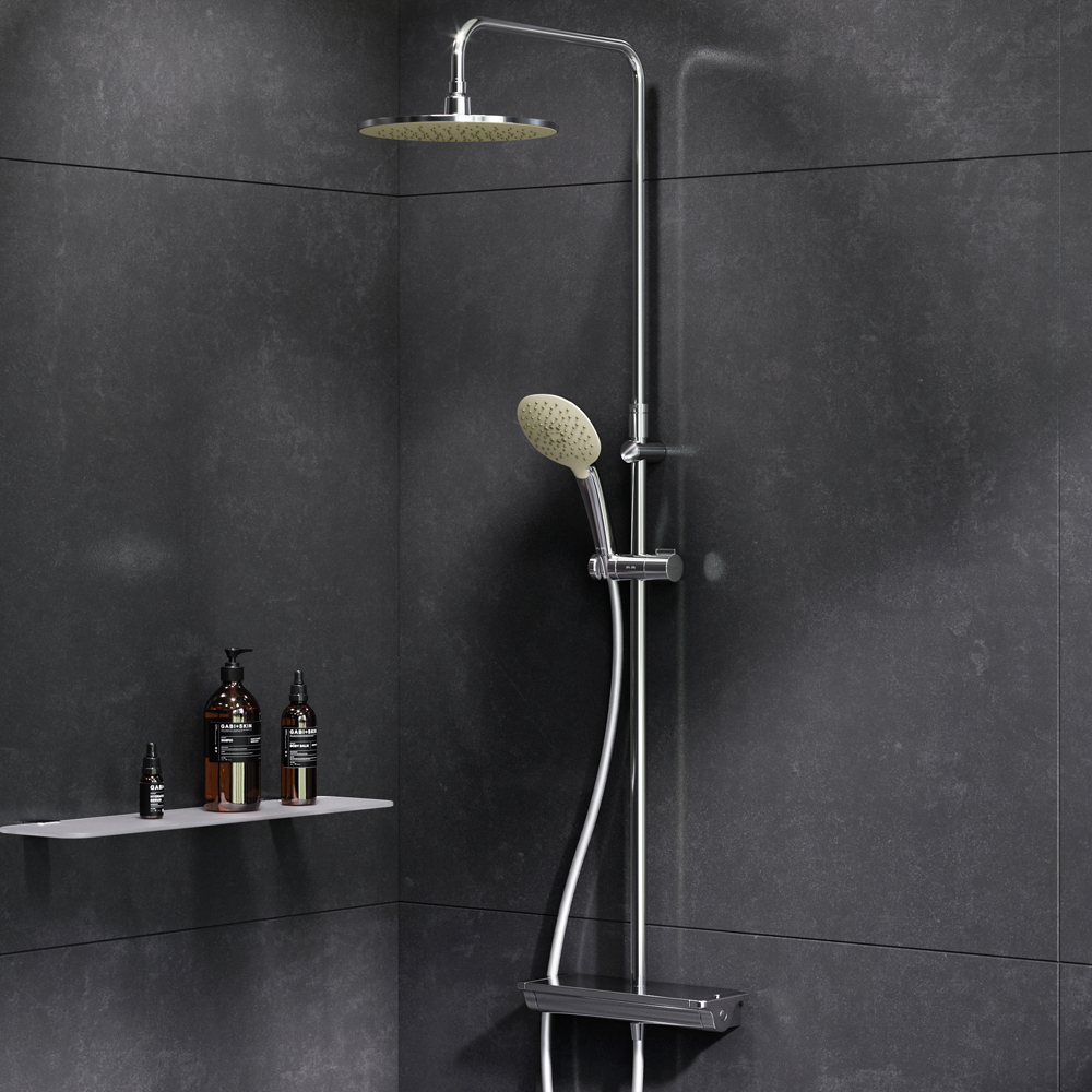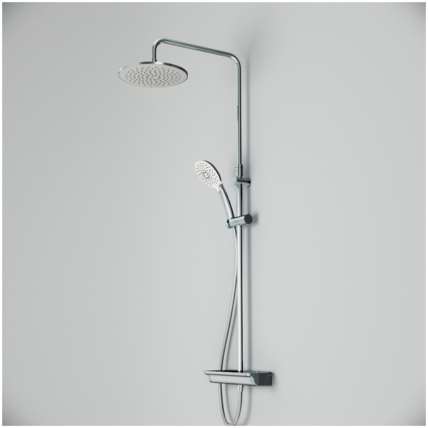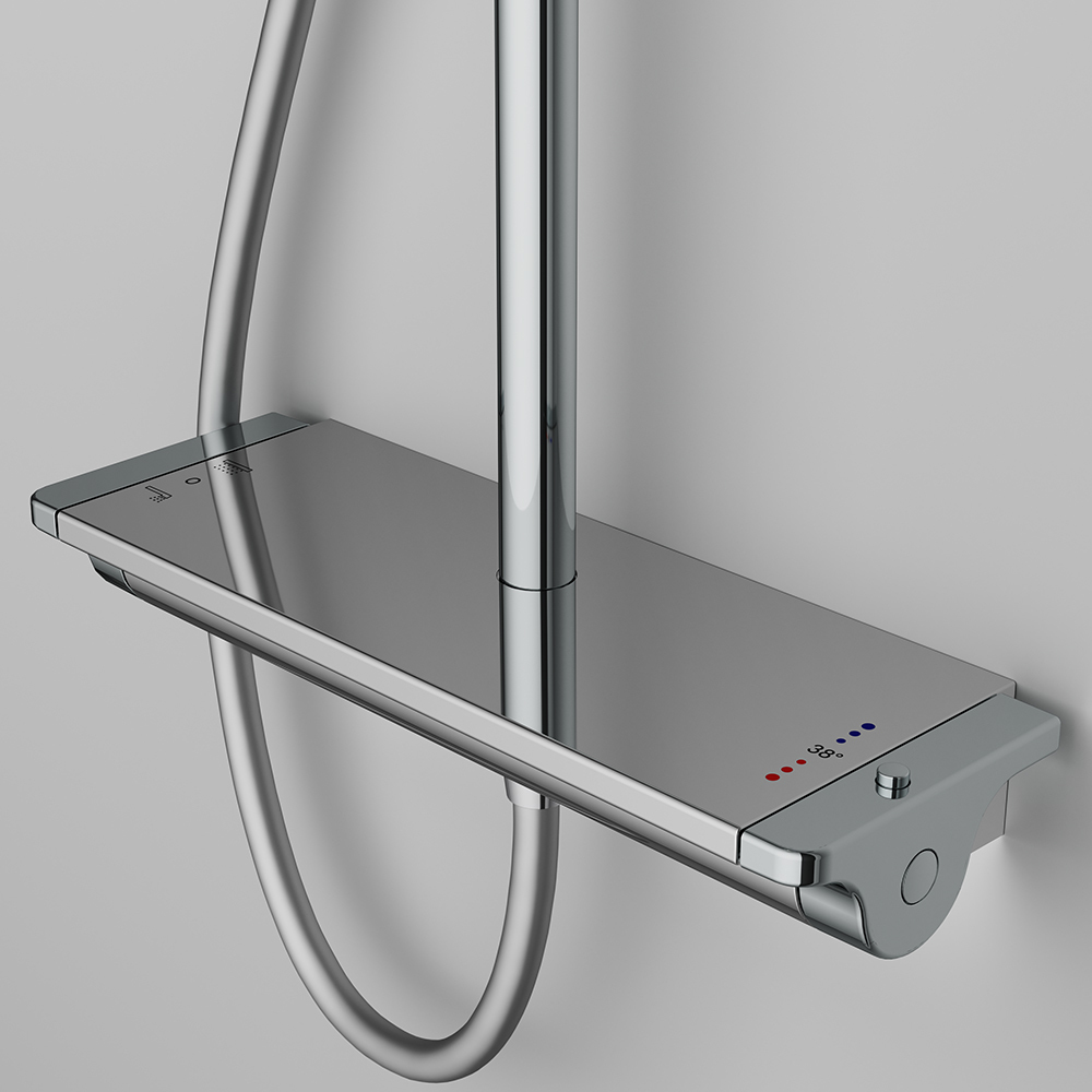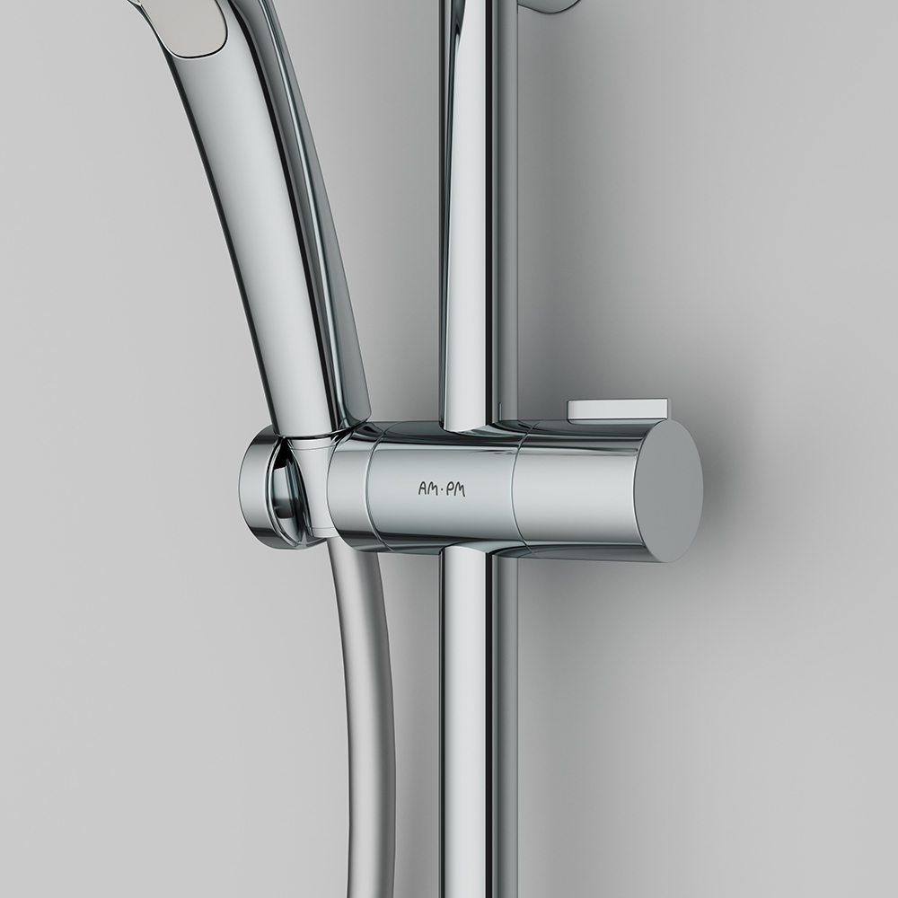 Регулируемый в трех плоскостях держатель для ручного душа, шаровый шарнир в держателе верхнего душа позволяет регулировать угол наклона, шарнирное соединение защищает душевой шланг от перекручивания.