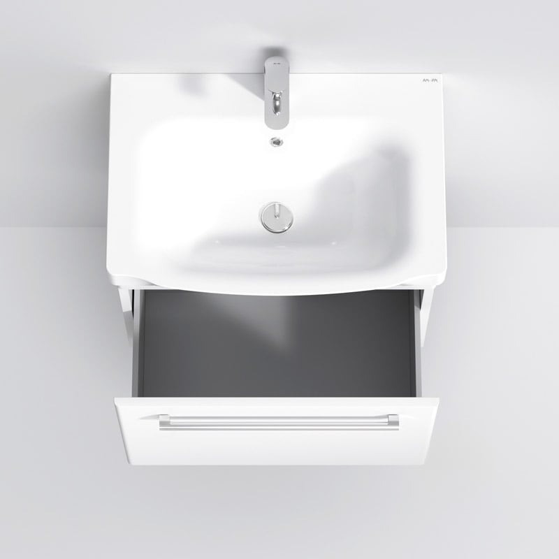 Покрытие в 7 слоев полиакриловыми эмалями защищает мебель от воздействия влаги и поддерживает первоначальный цвет продукта в течение всего срока службы. Подвесная конструкция выглядит эффектно и способствует более быстрой уборке.