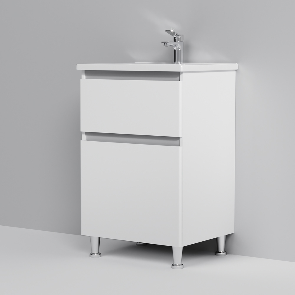 Мебель AM.PM X-JOY - современный европейский дизайн в стиле минимализм. Комплект мебели оснащен удобной и функциональной керамической раковиной с глубокой чашей.