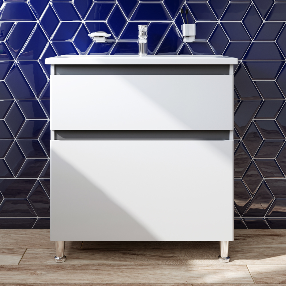Мебель AM.PM X-JOY - современный европейский дизайн в стиле минимализм. Комплект мебели оснащен удобной и функциональной керамической раковиной с глубокой чашей.