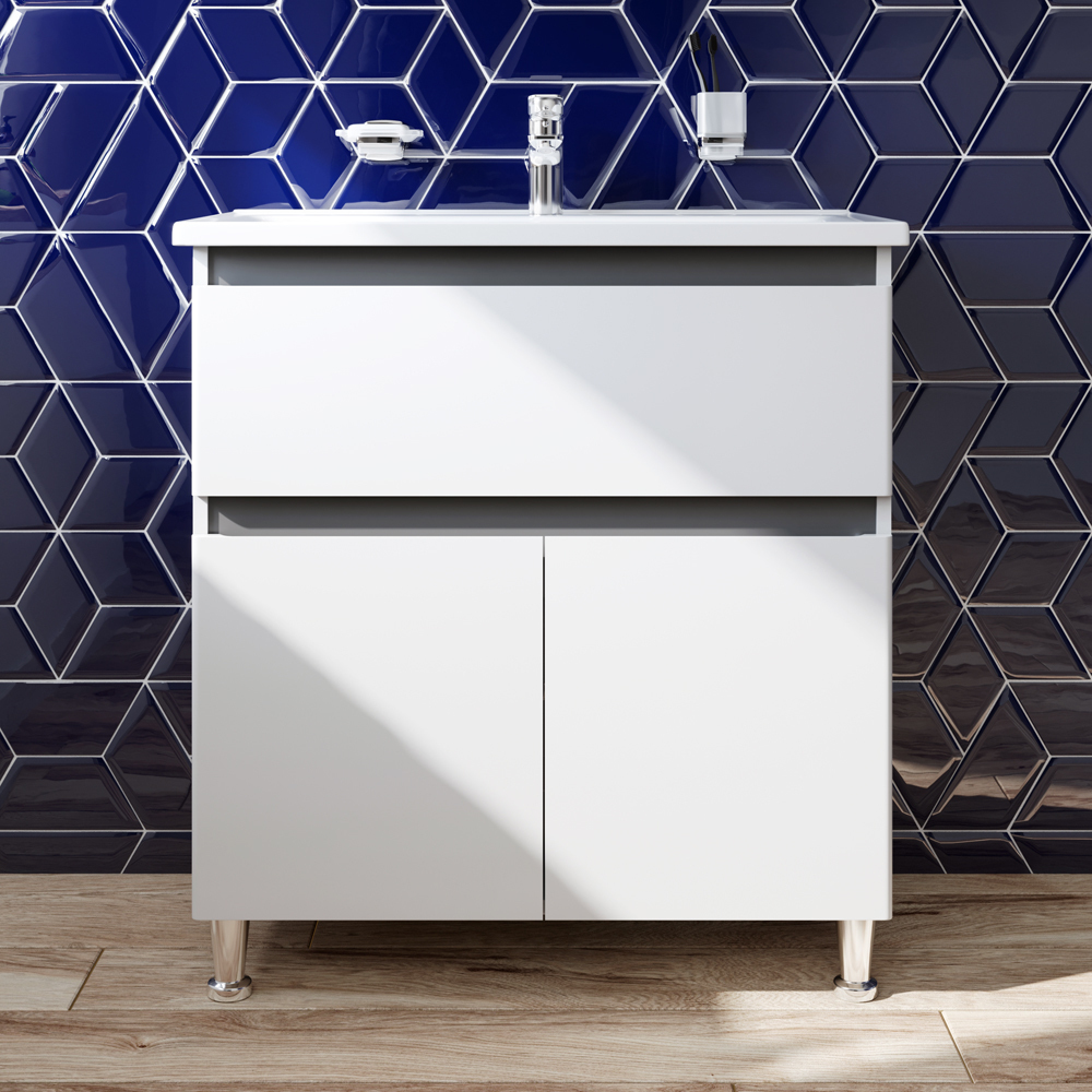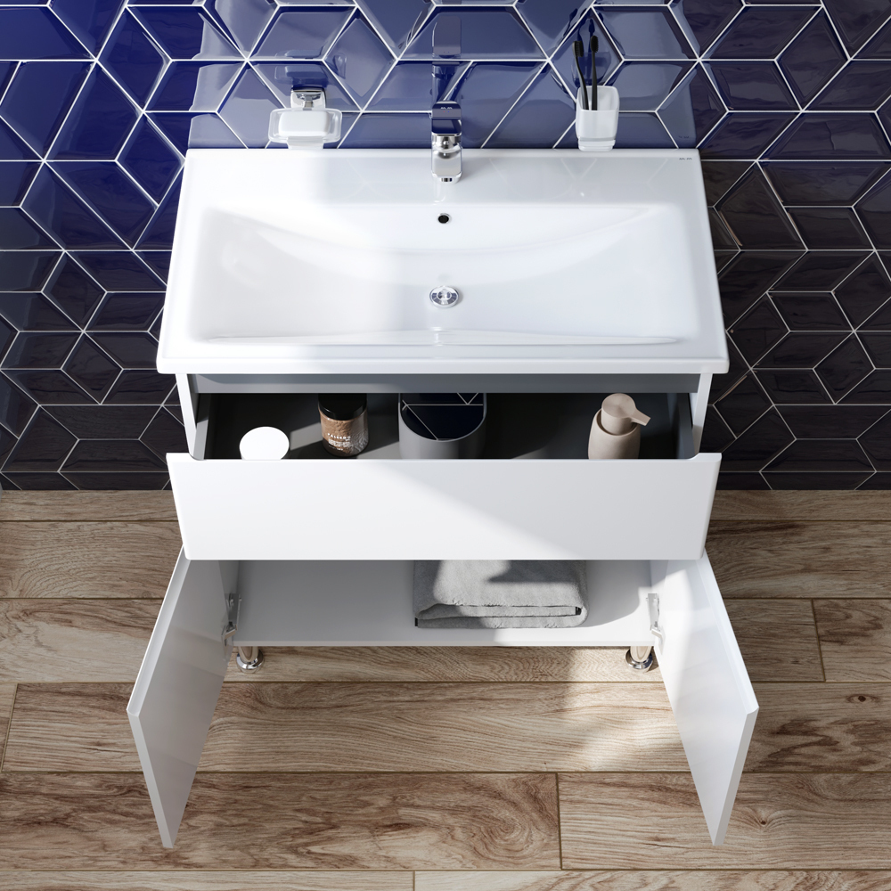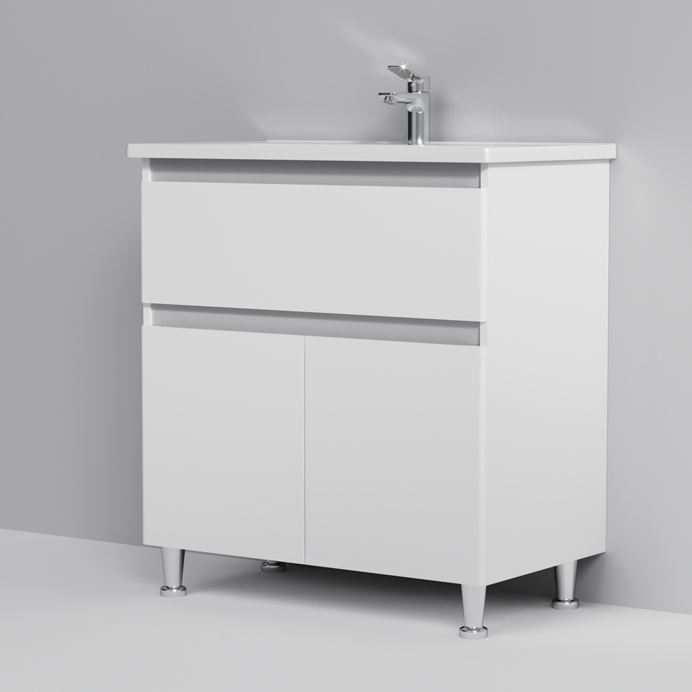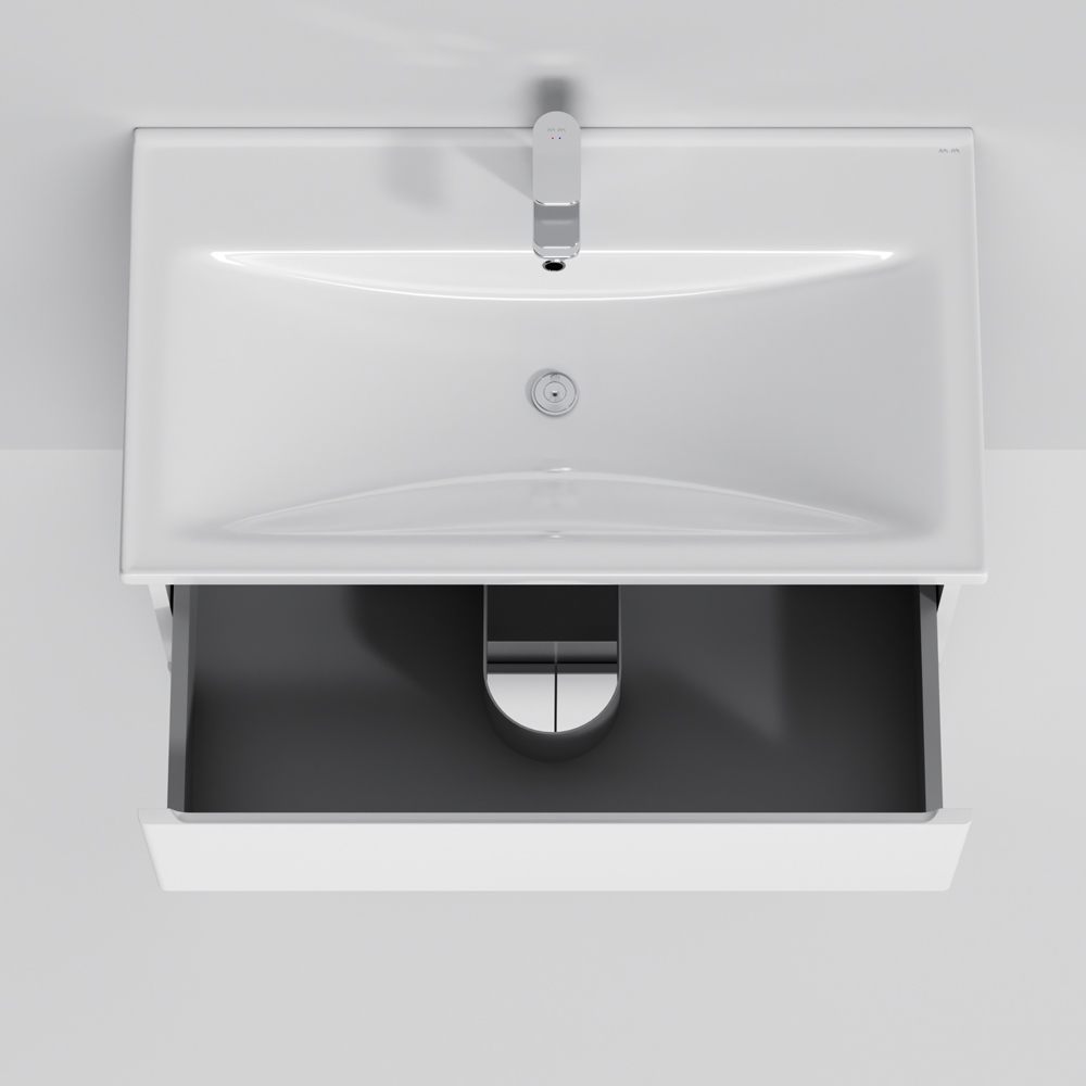 Мебель AM.PM X-JOY - современный европейский дизайн в стиле минимализм. Комплект мебели оснащен удобной и функциональной керамической раковиной с глубокой чашей.