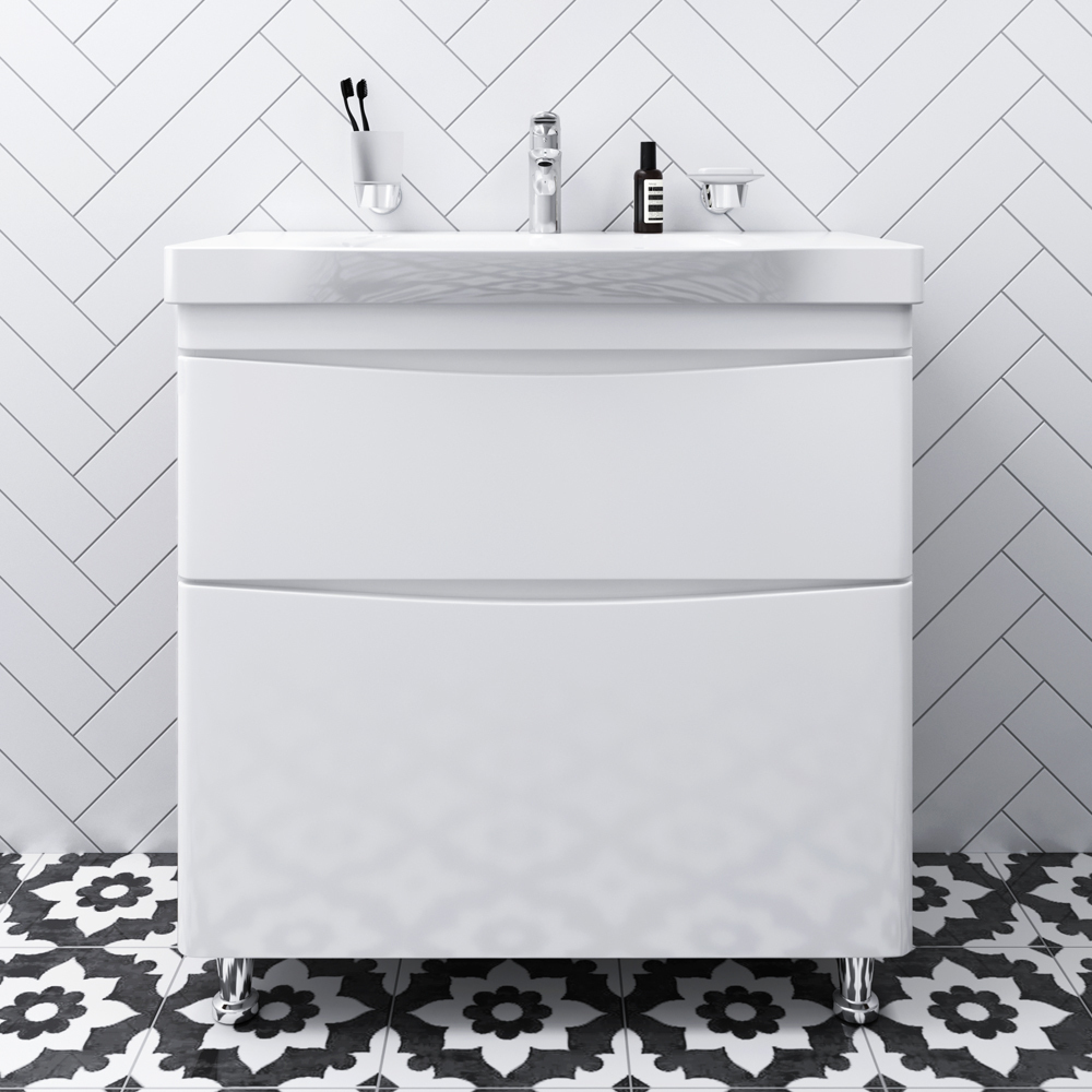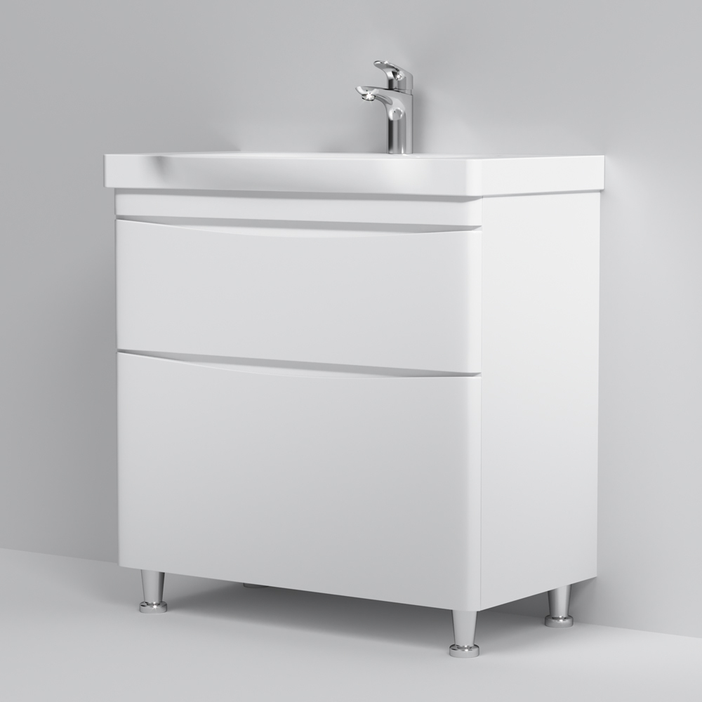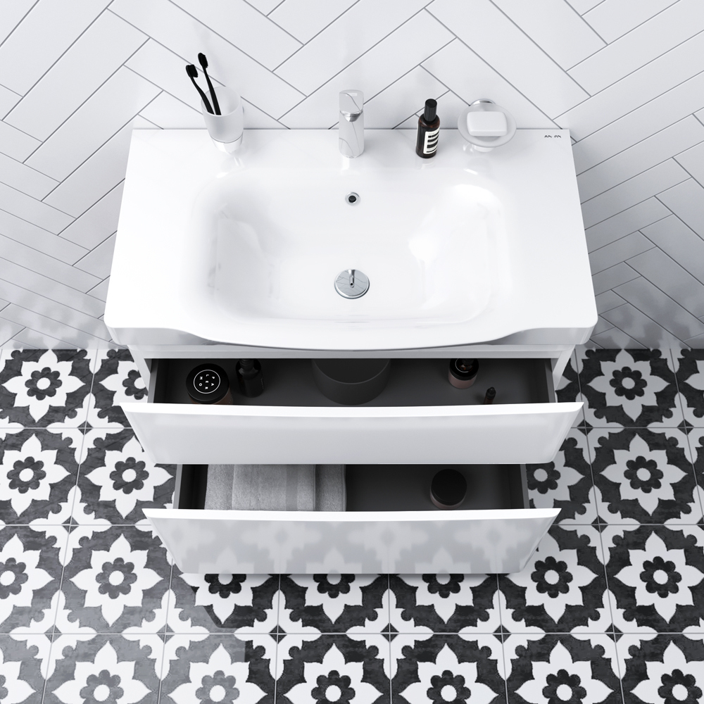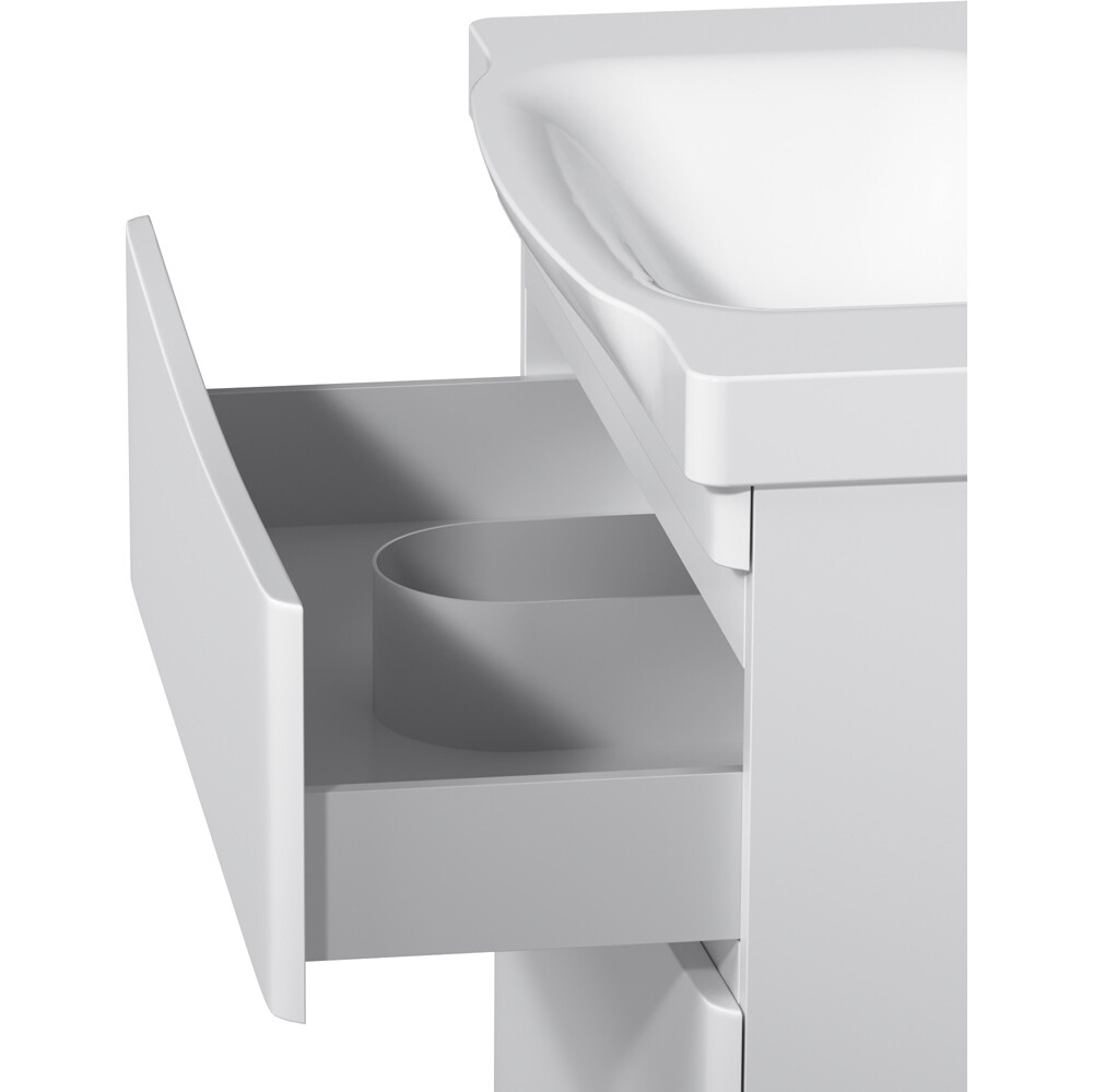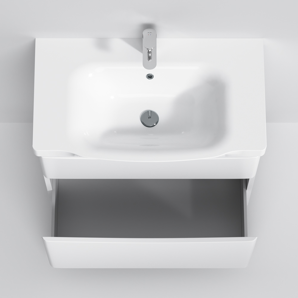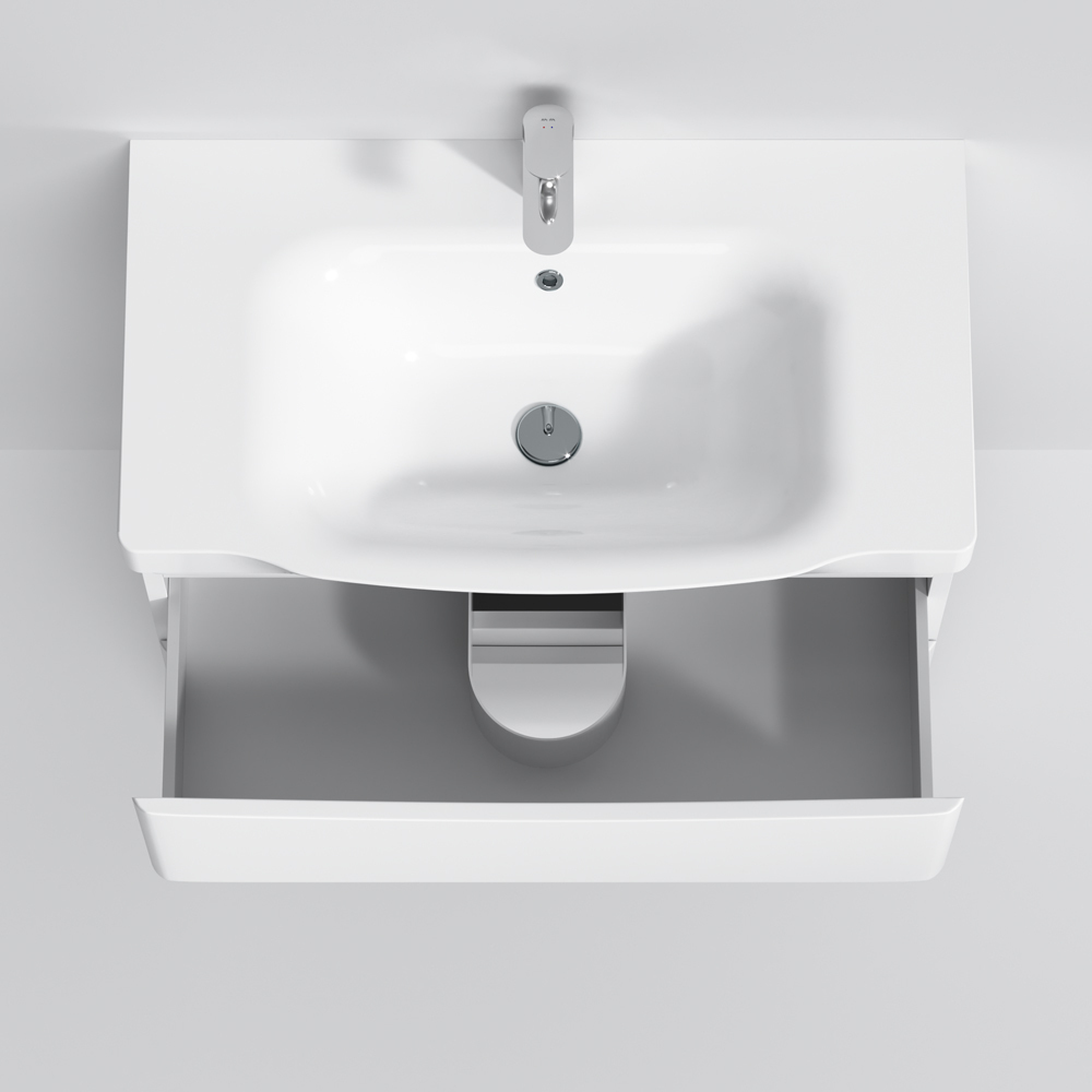 Утонченность в деталях: удобные интегрированные в фасад ручки идеально повторяют изгиб выступа раковины.