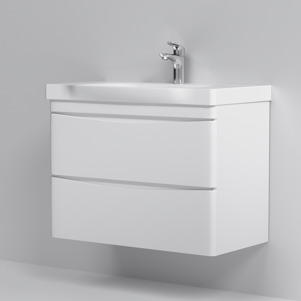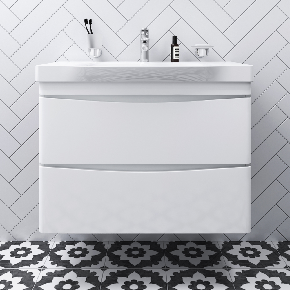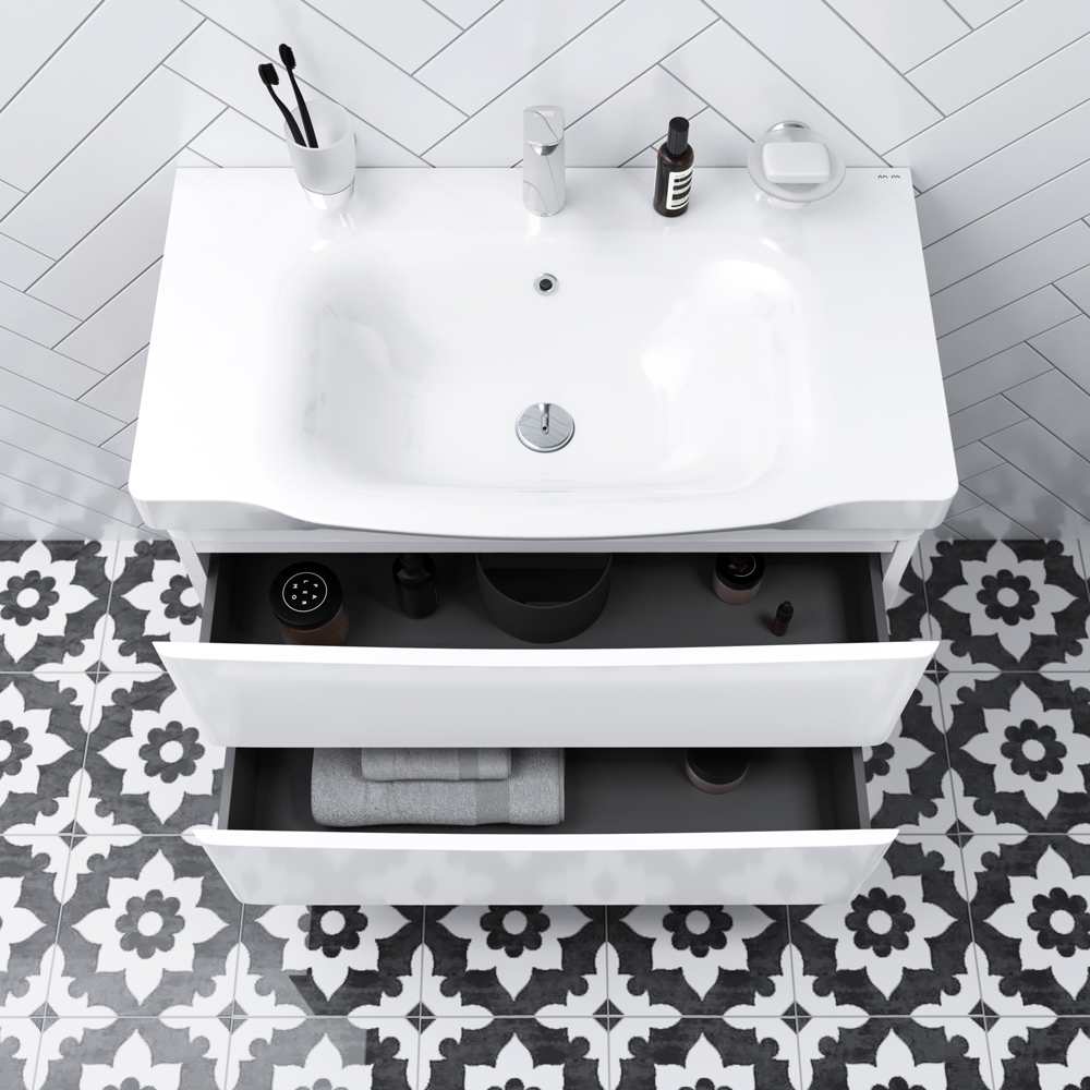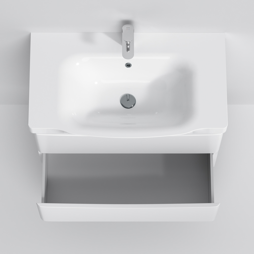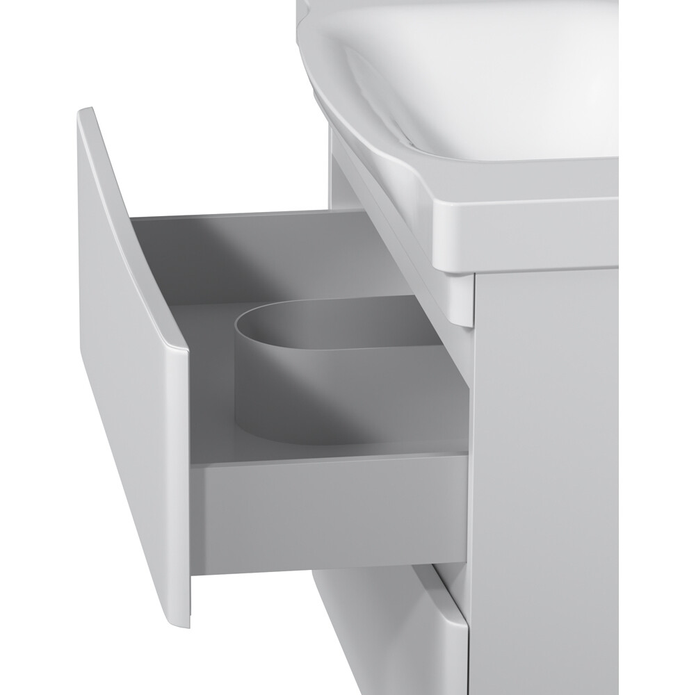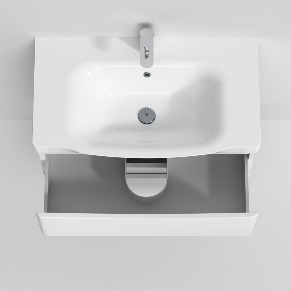 Утонченность в деталях: удобные интегрированные в фасад ручки идеально повторяют изгиб выступа раковины.