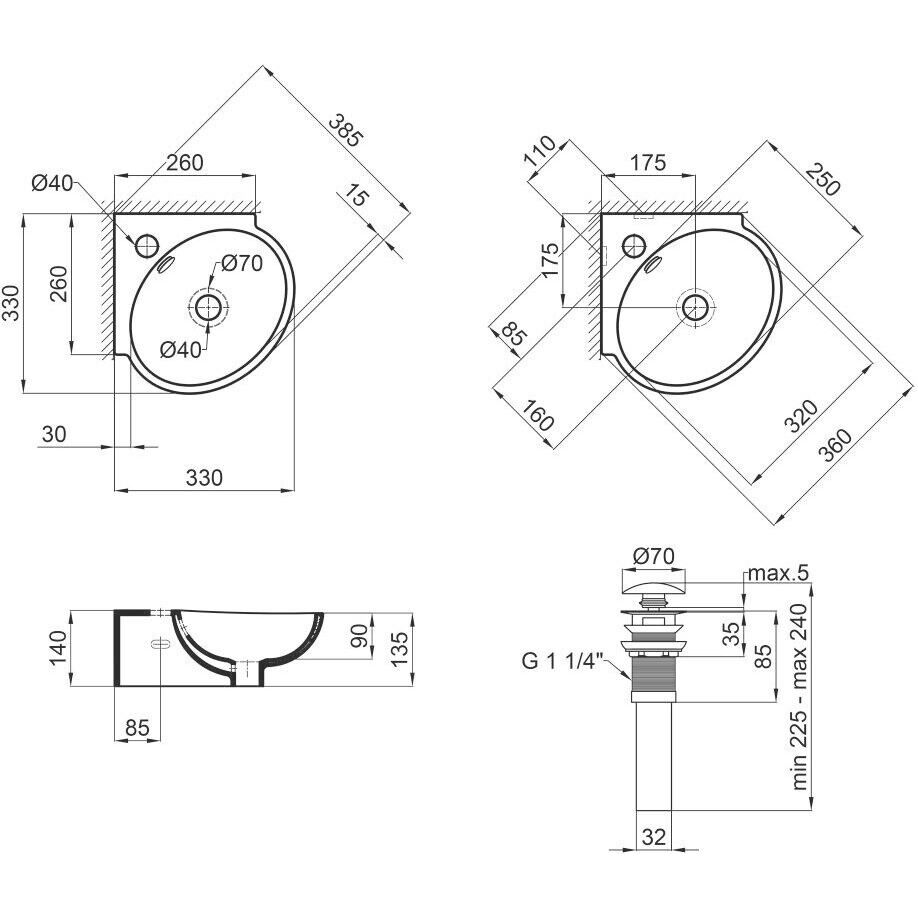 Комплект Qtap Leo N: Раковина подвесная угловая овальная 380x360x130 мм White + Донный клапан PU02O: Угловая подвесная раковина овальной формы, компактная и стильная. Этот комплект с донным клапаном PU02O — идеальное решение для маленьких ванных комнат.