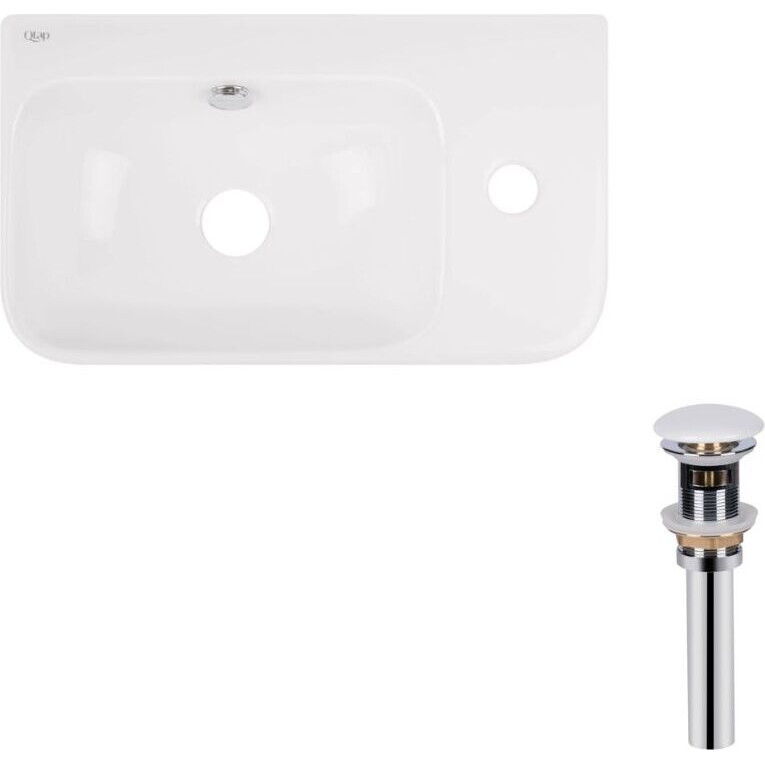 Комплект Qtap Tern: Раковина подвесная прямоугольная правая 450х260х155 мм White + Донный клапан PU02O: Подвесная раковина для правосторонней установки с размерами 450х260х155 мм. Белый цвет и минималистичная форма гармонично впишутся в любую ванную комнату, а донный клапан PU02O обеспечивает удобство в эксплуатации.
