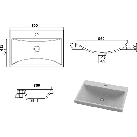 - Форма умывальника - прямоугольная