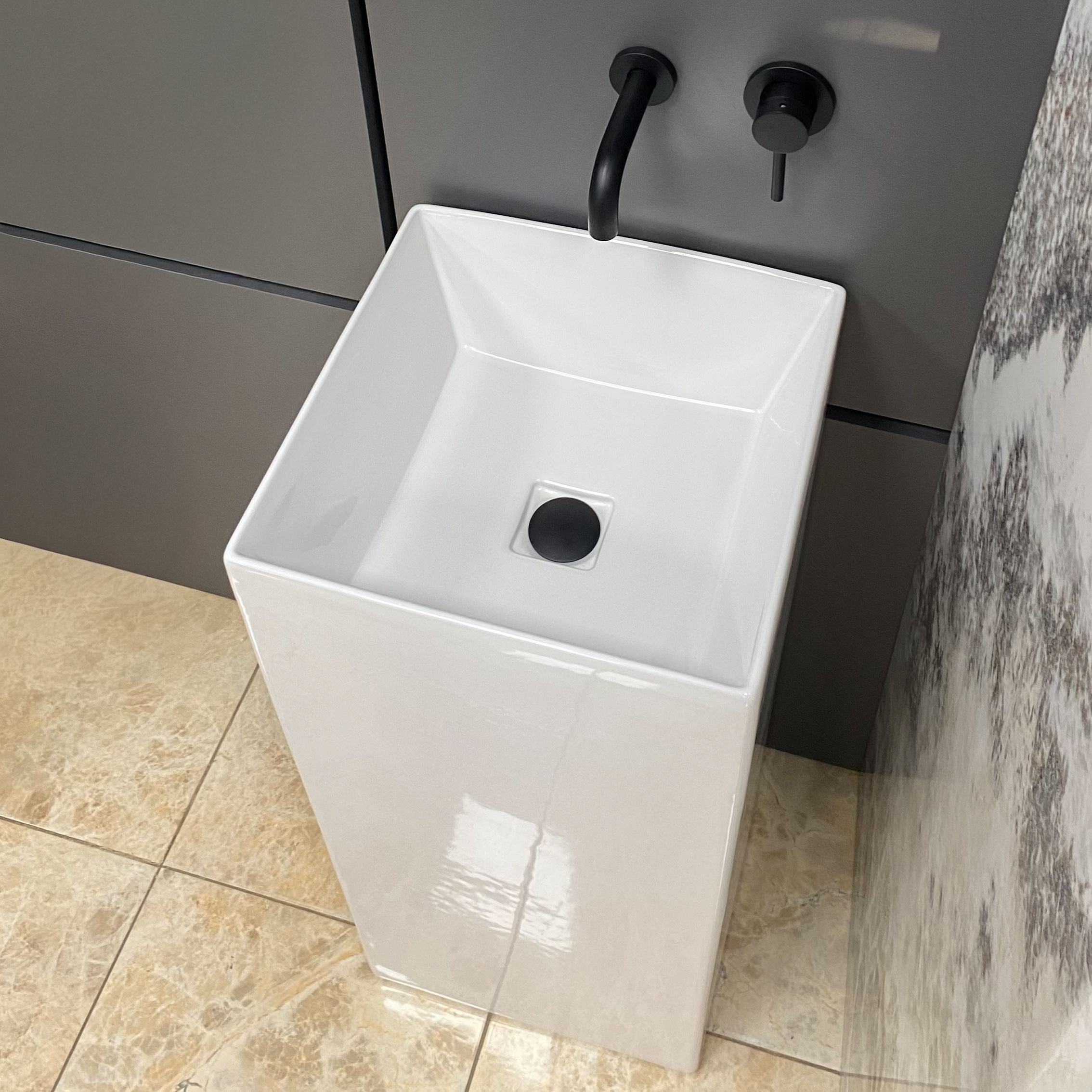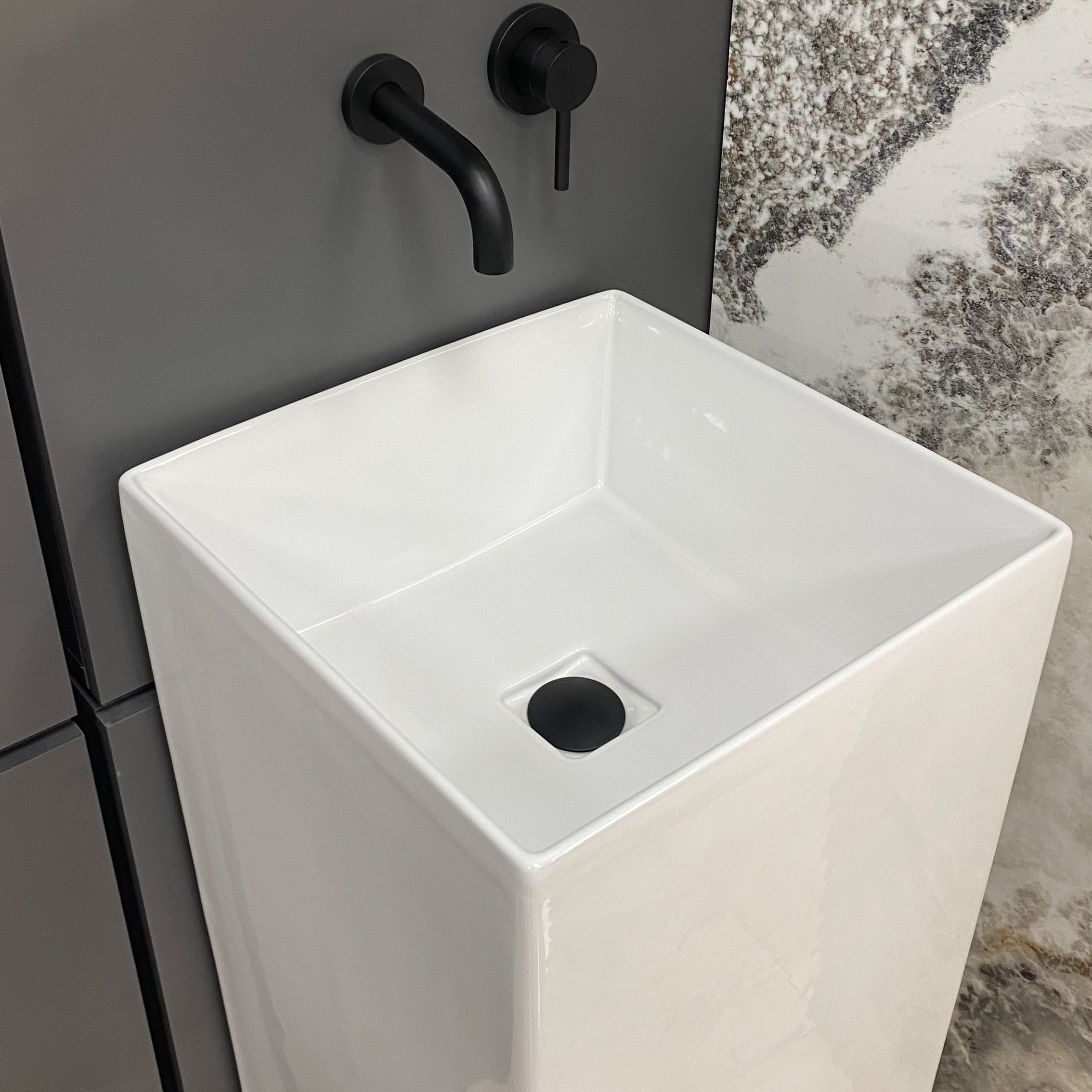 Напольный умывальник VBI ELLERA изготовлен из керамики, имеет идеальные пропорции и квадратную форму. Выполнен в белом цвете с глянецевым покрытием. Умывальник очень удобен при использовании и придаст свой шарм в ванной комнате. Есть отверстие в днге и в задней стенке раковины, для любого удобного подключения.