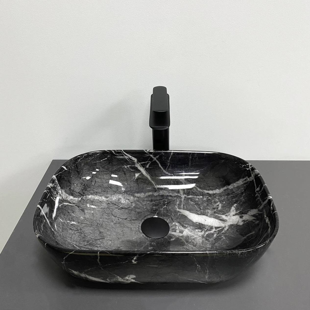 Накладные раковины из коллекции VBI RAVENNA имеют современную прямоугольную форму со смягченными закруглениями. Универсальный дизайн позволяет подобрать смеситель любой формы. Раковина изготовлена из керамики высочайшего качества, отличающейся высокими гигиеническими свойствами. Модель VBI RAVENNA BLACK OPAL имеет уникальный рисунок с глянцевым покрытием.