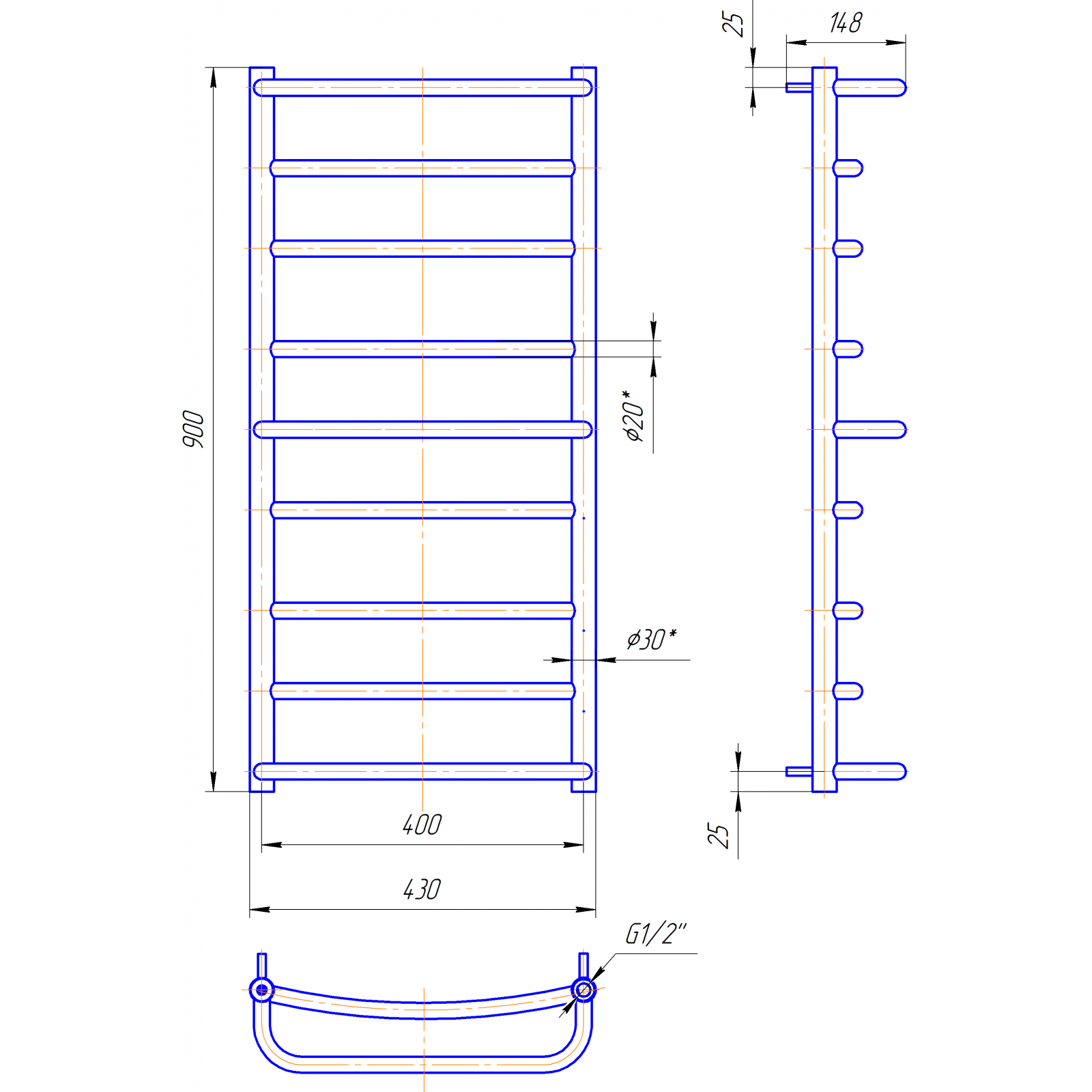 Полотенцесушитель "Марио" Люкс 900х430/400.