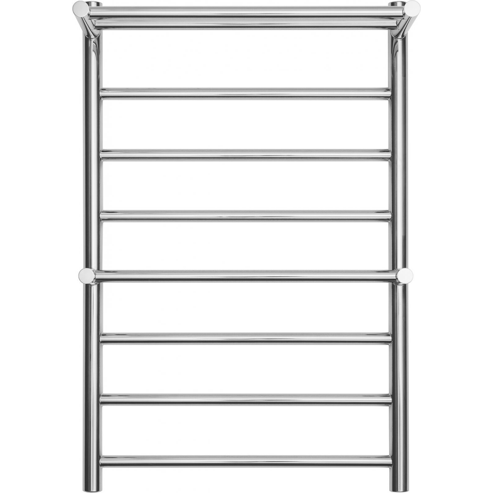 Водяной полотенцесушитель Классик с полкой 500х800 от украинского производителя NAVIN изготовлен из пищевой нержавеющей стали, которая является устойчивой к царапинам и механическим повреждениям, а также обладает высокой антикоррозийной устойчивостью. Толщина стенки полотенцесушителя составляет 2 мм и имеет зеркальную полированную поверхность, полученную путем высокоточной электроплазменной полировки.