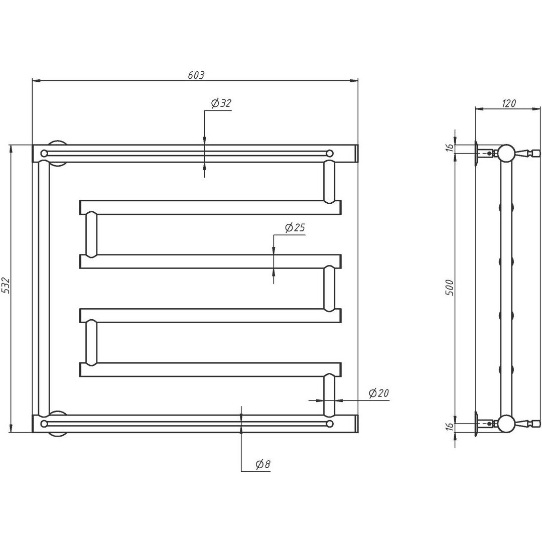 Водяной полотенцесушитель Креатив 500х600 от украинского производителя NAVIN изготовлен из пищевой нержавеющей стали, которая является устойчивой к царапинам и механическим повреждениям, а также обладает высокой антикоррозийной устойчивостью. Толщина стенки полотенцесушителя составляет 2 мм и имеет зеркальную полированную поверхность, полученную путем высокоточной электроплазменной полировки.