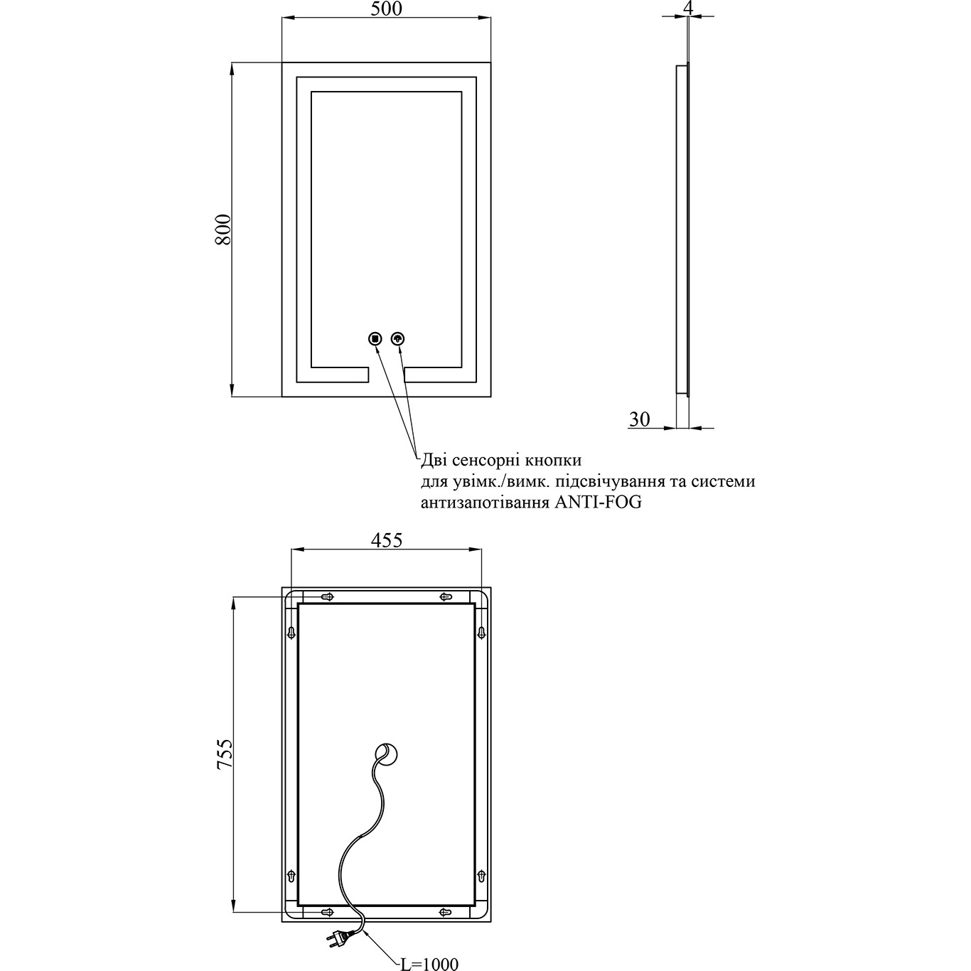- ANTI-FOG — встроенная система защиты от запотевания, благодаря которой зеркало остается чистым даже после горячего душа.