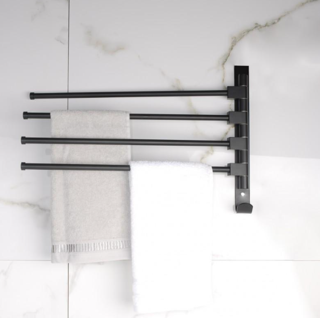 Практичне та цікаве рішення у вашу ванну кімнату. Він має товстий гачок та чотири кронштейни, які можна розташувати незалежно або повністю скласти з будь-якої сторони стіни. Необхідний аксесуар для ванної кімнати, що займає мало місця і дозволяє тримати речі гаразд.