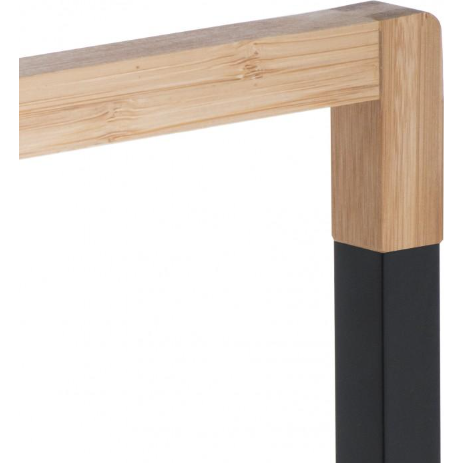 Сушка для рушників для ванної кімнати. Виготовлений із сталі, покритої чорною, матовою фарбою. Верх виготовлений із натурального вологостійкого бамбукового дерева.