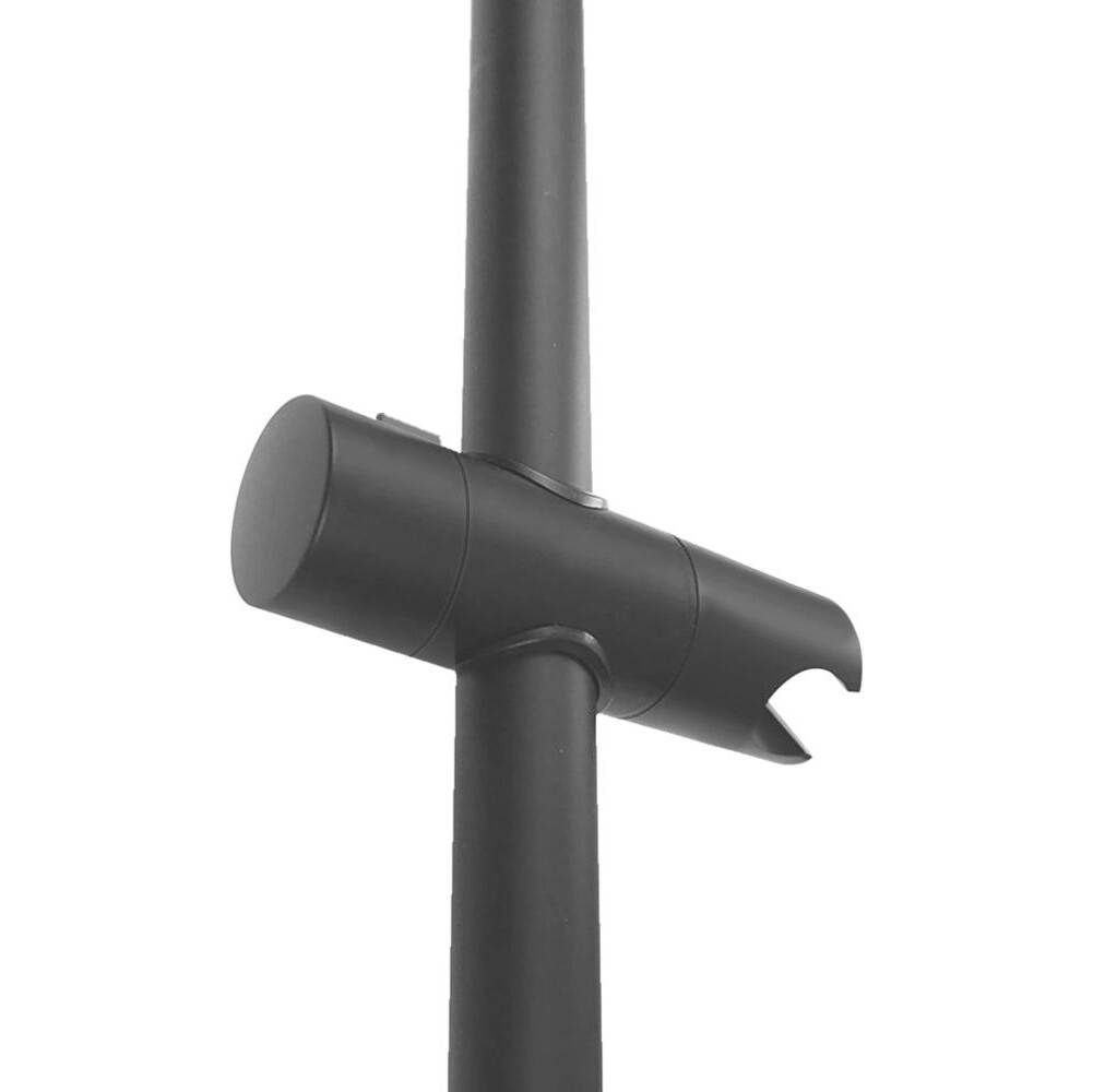 Функціональний тримач для душової лійки, виготовлений із якісного металу з чорним покриттям. Він чудово впишеться як у змішувачі для ванни, так і для душу. Монтажний комплект у комплекті. Мінімалістичний та елегантний, ідеально підходить для вашої ванної кімнати.