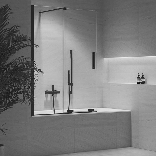 Двосекційна розсувна перегородка для прямокутних ванн. У хромованому або чорному виконанні з прозорим склом та захисним шаром Ravak AntiCalc®. Поворотна конструкція для встановлення зліва та справа.