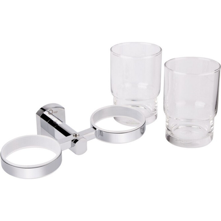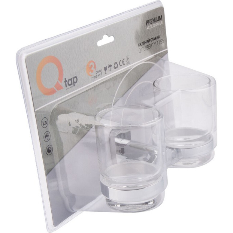 Подвійна склянка Qtap Liberty CRM 1155 знімна, завдяки чому догляд за ним буде простим і легким. У виробі використовуються кільця ущільнювачів (прокладки), необхідні для щільного з'єднання металу і скла, також перешкоджають виникненню шуму в результаті зіткнення частин виробу. Фурнітура склянок прозора. На утримувач нанесено фірмовий логотип виробника.