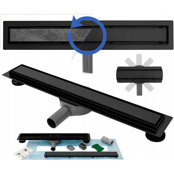 Трап Neo Pro Black 2в1 виготовлений із високоякісної кислотостійкої нержавіючої сталі Aisi 304. Остаточний колір водостоку був заданий на етапі виробництва та закріплений покриттям NanoFLEX, яке чудово захищає приплив від вологи та полегшує відведення води. . Характерна особливість зливу – двостороння кришка з можливістю приклеювання плитки до кришки зливу. Кінцевий результат дозволить встановленим зливом гарно гармонувати з декором підлоги, а при необхідності його можна перевернути, щоб отримати чорну поверхню.