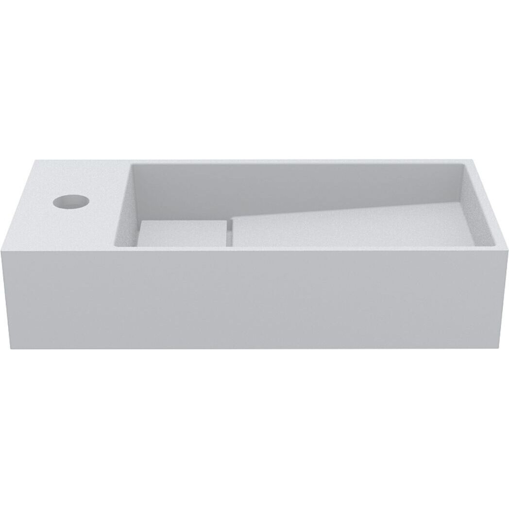 Умивальник TONI 450 R призначений для підвісного монтажу та оснащений отвором під змішувач зліва від чаші. Отвір під слив прихований декоративною накладкою.