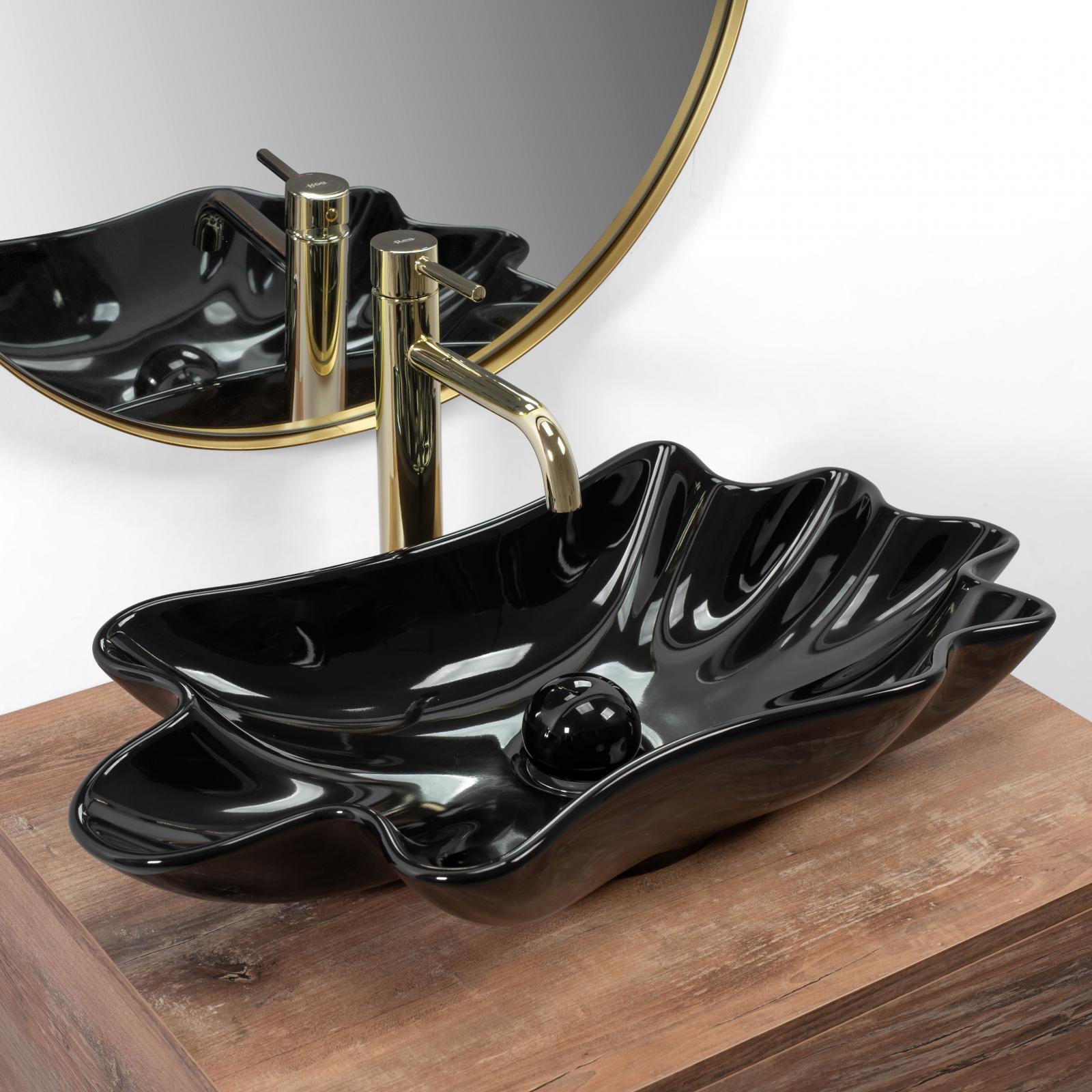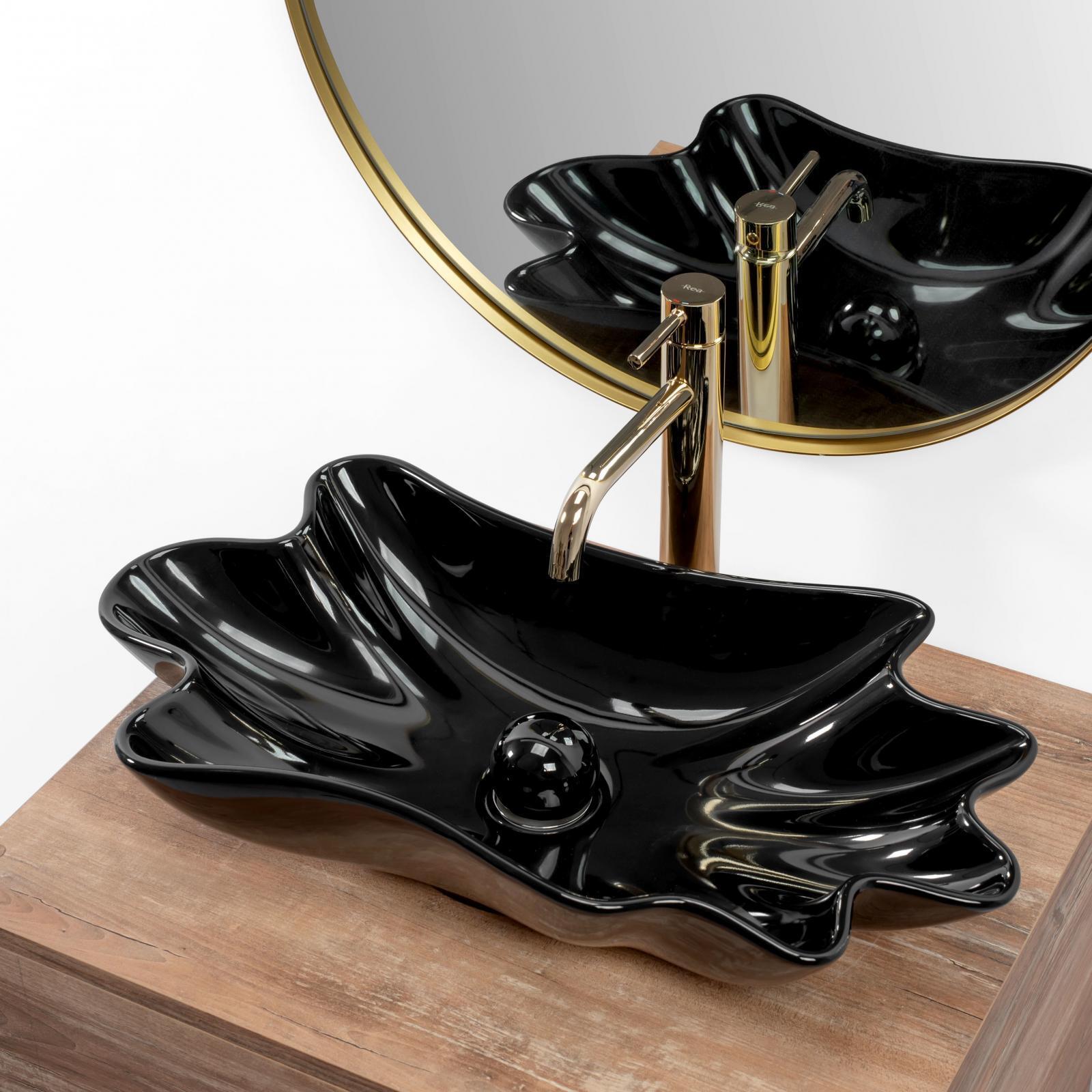 Раковина виготовлена з чорної кераміки найвищої якості та має неправильну хвилясту форму. Глянцеве оздоблення додасть класності та прикрасить інтер'єр. Він стане чудовим доповненням для любителів нестандартних форм, привносячи елегантність в облаштування ванної кімнати вдома та в офісі.