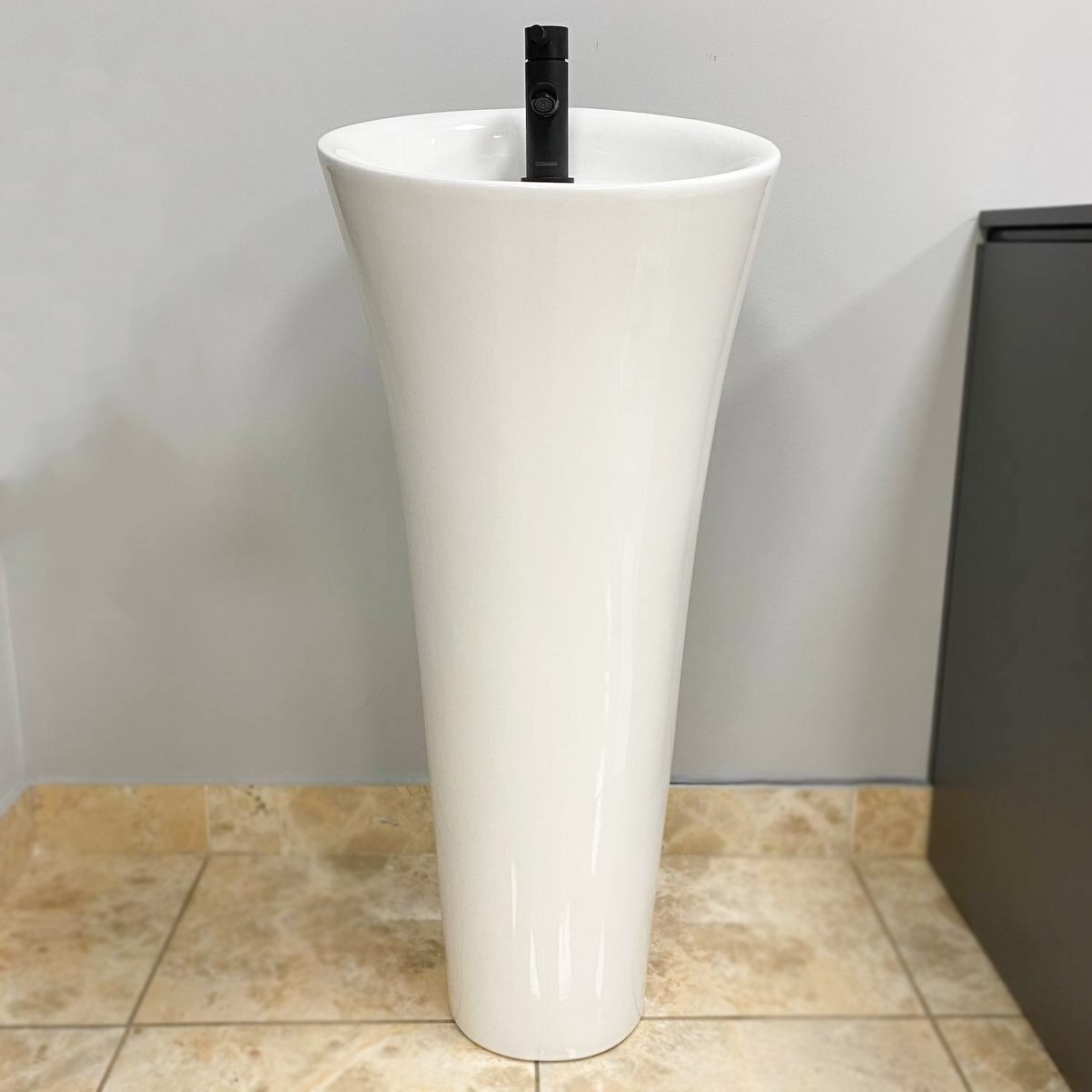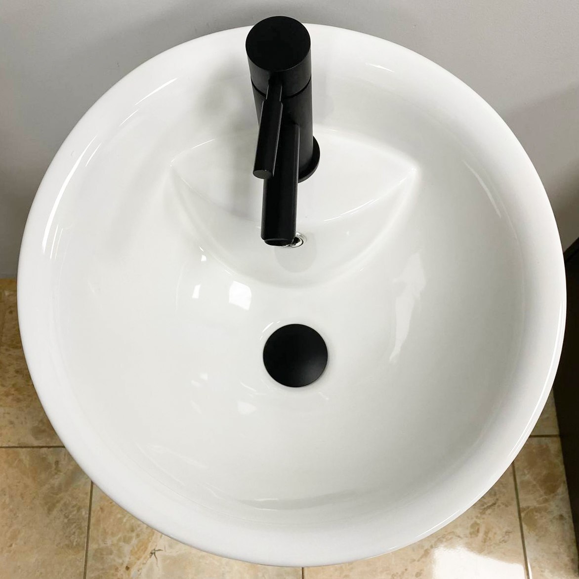 Окрема раковина VBI ANDORA вражає своїм круглим профілем, зверху вниз вона звужується, що надає раковині легкості. У раковині є отвори в задній стінці та в дні, для будь-якого зручного способу підключення до виходу каналізації. Виготовлена з високоякісної кераміки у білому глянсовому кольорі. Умивальник стане центральним елементом ванної кімнати і надасть їй виразного вигляду.