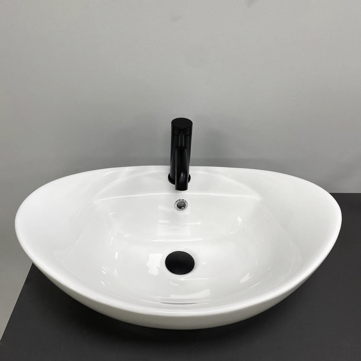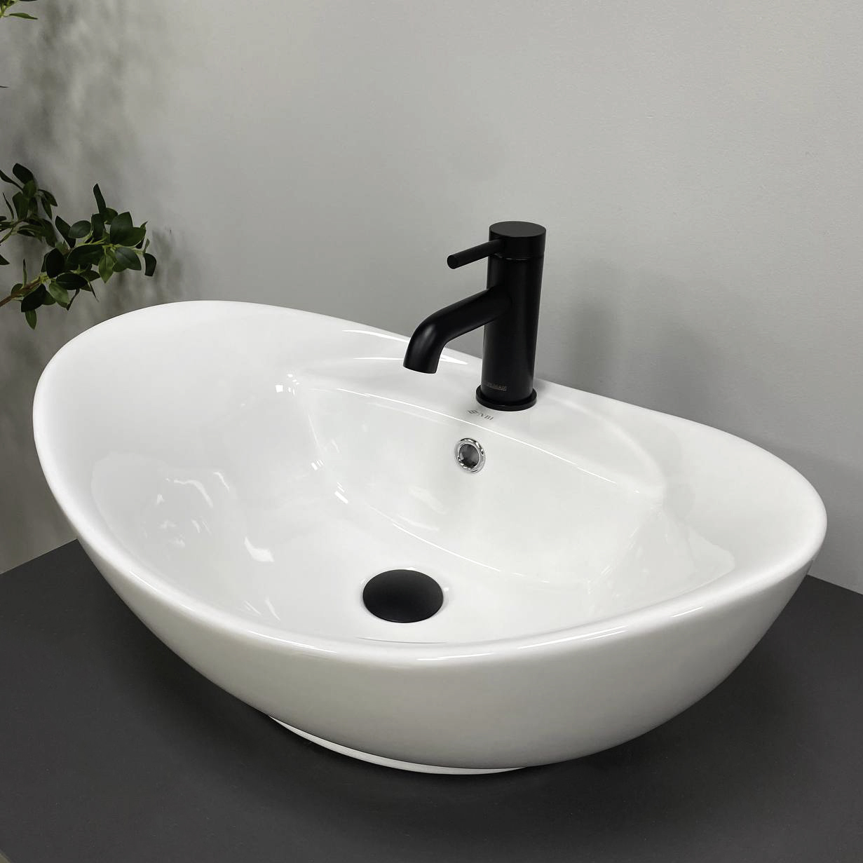 Накладний умивальник VBI ARONA - має високий попит і доступний в білому кольорі в глянсовому виконанні. Неймовірна раковина, що приваблює своєю подовженою овальною формою, а кути гостріші із заокругленнями, що виглядає дуже сучасно. Накладна за способом установки має отвір під змішувач, що допоможе заощадити дорогоцінний простір на стільниці.