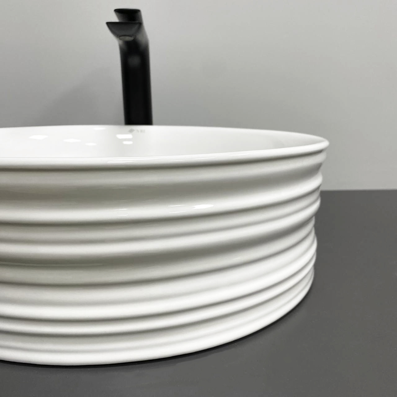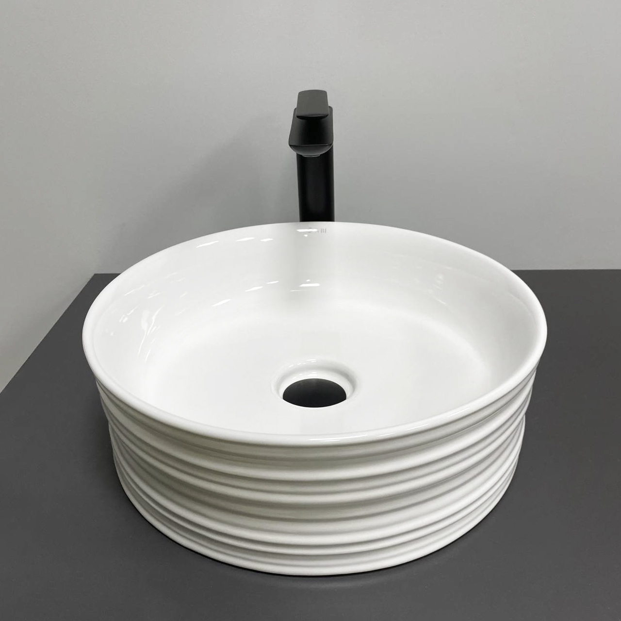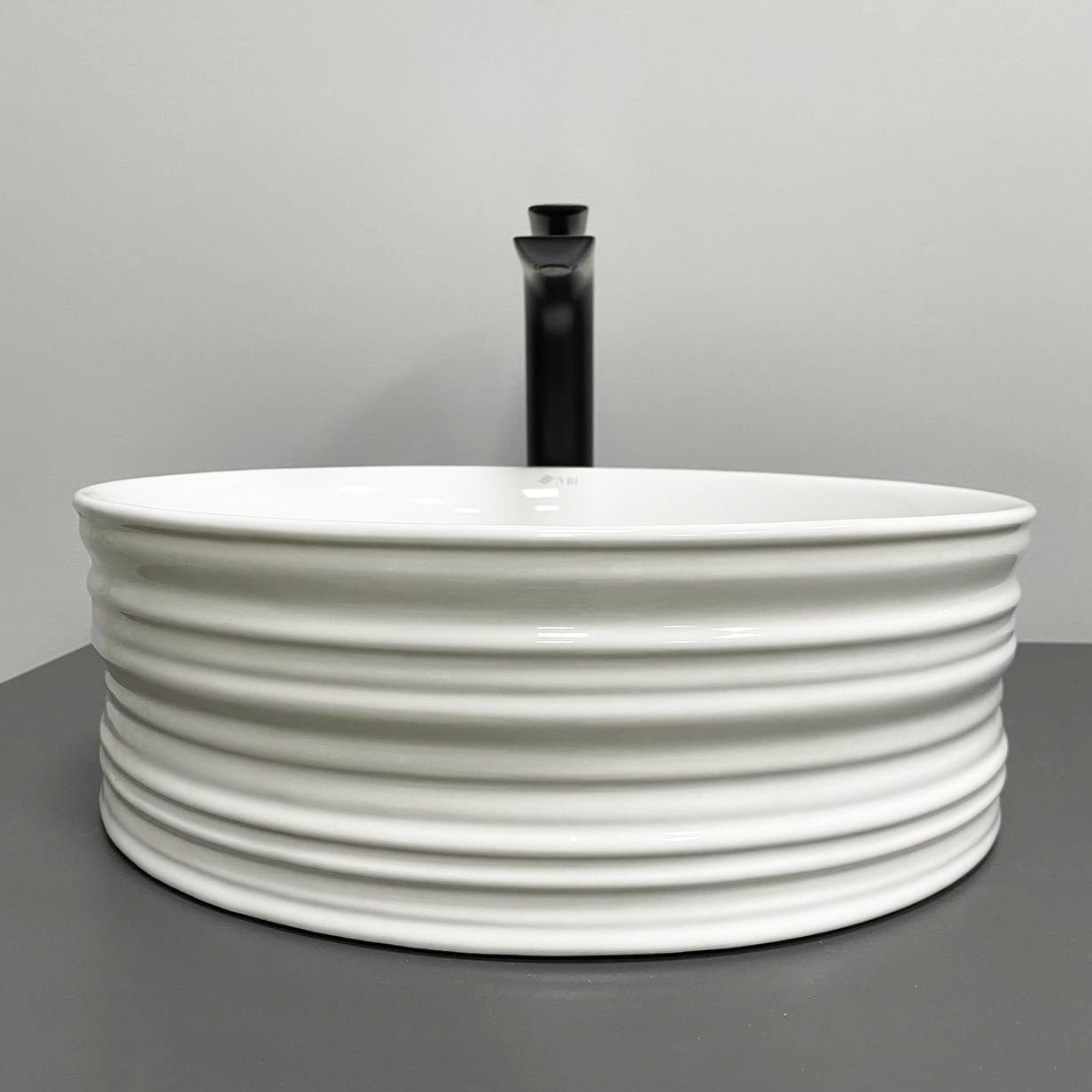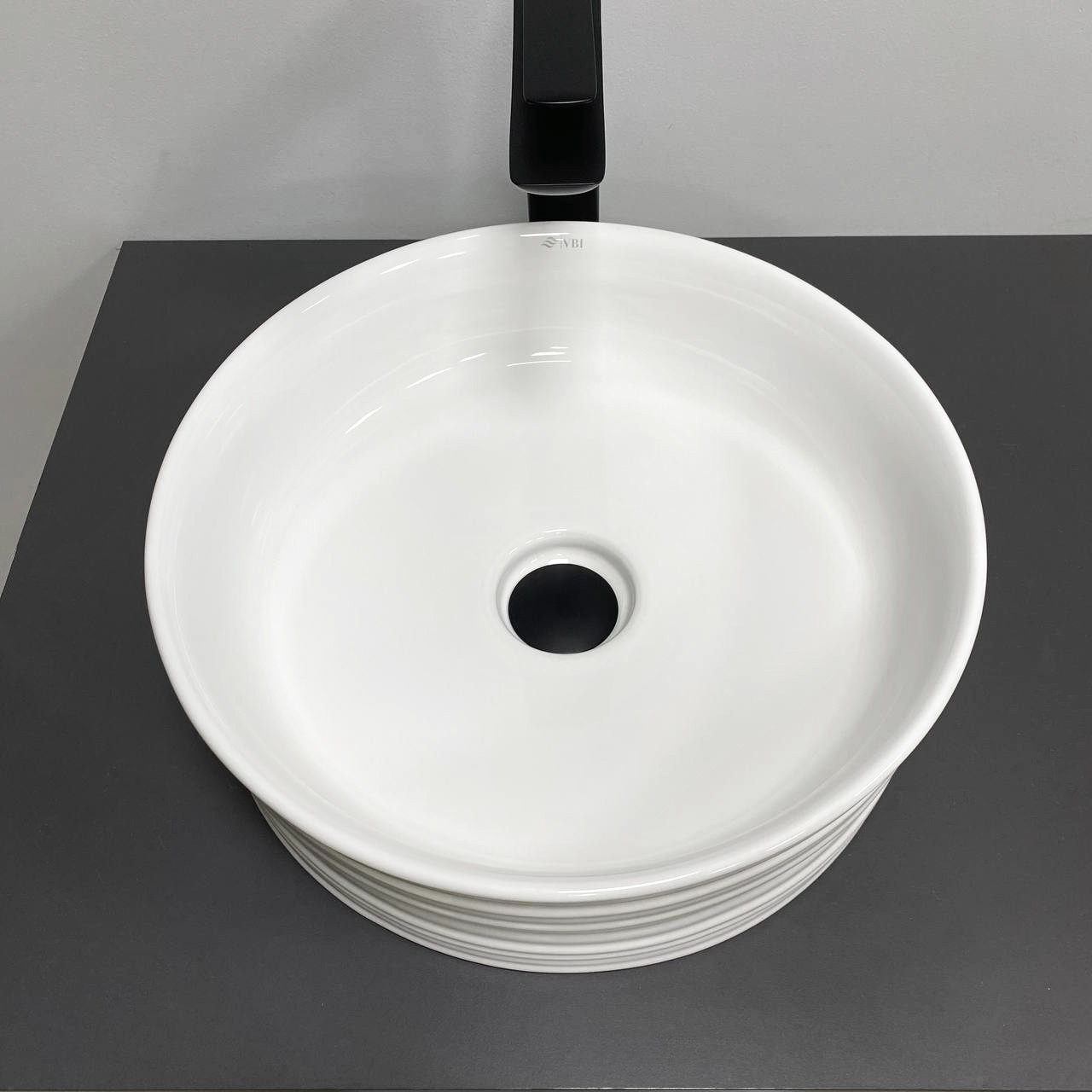 Накладна раковина VBI LARINO має високий попит. Доступна у білому глянсовому виконанні. Форма раковини має ідеальне коло, а її стінки прямі та високі, що забезпечує максимальний комфорт при використанні. Виготовлена із кераміки. Призначена для встановлення на стільницю.