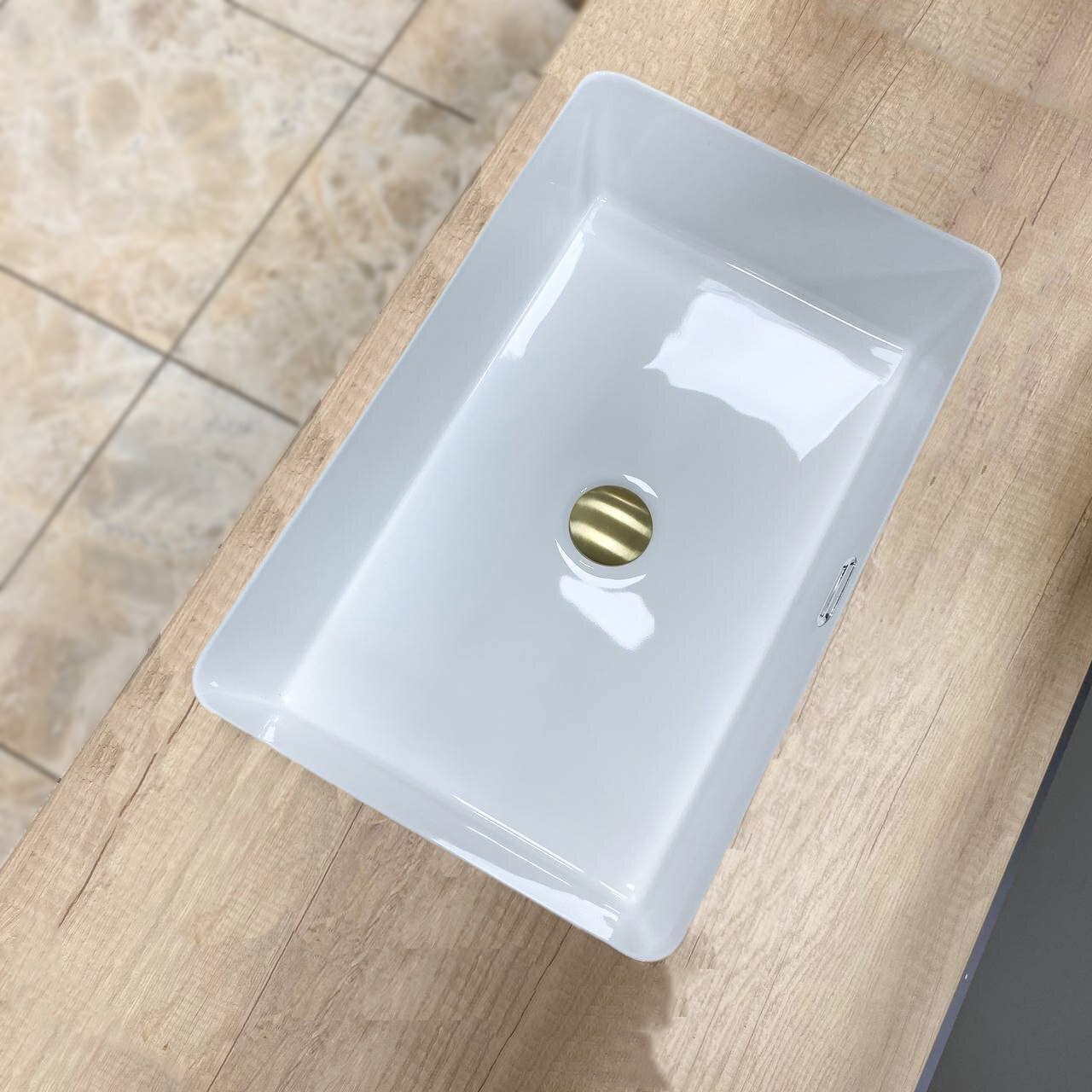 Врізна раковина має комфортну прямокутну форму. Вона виготовлена з кераміки та має отвір для переливу, що забезпечить безпечне користування на довгі роки.