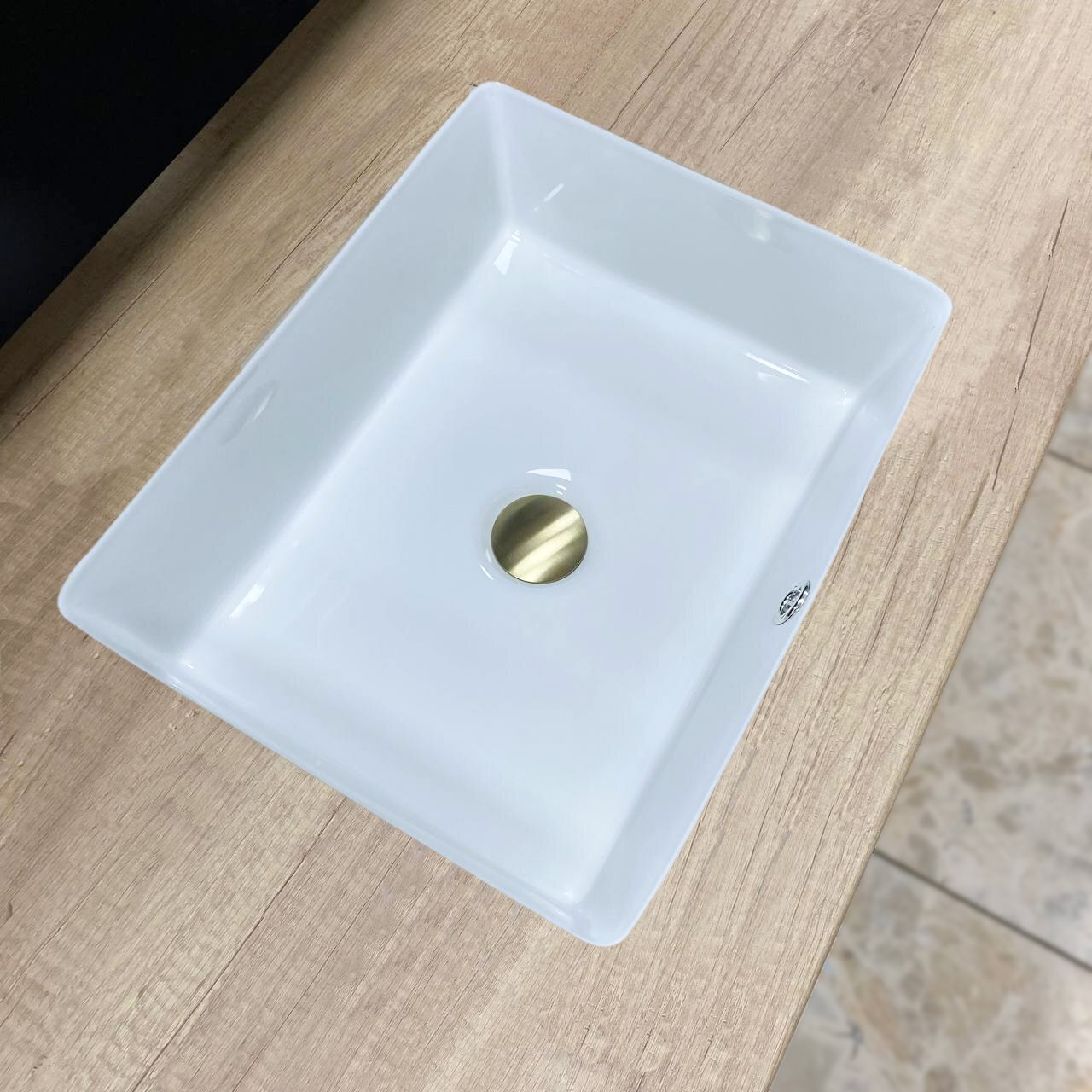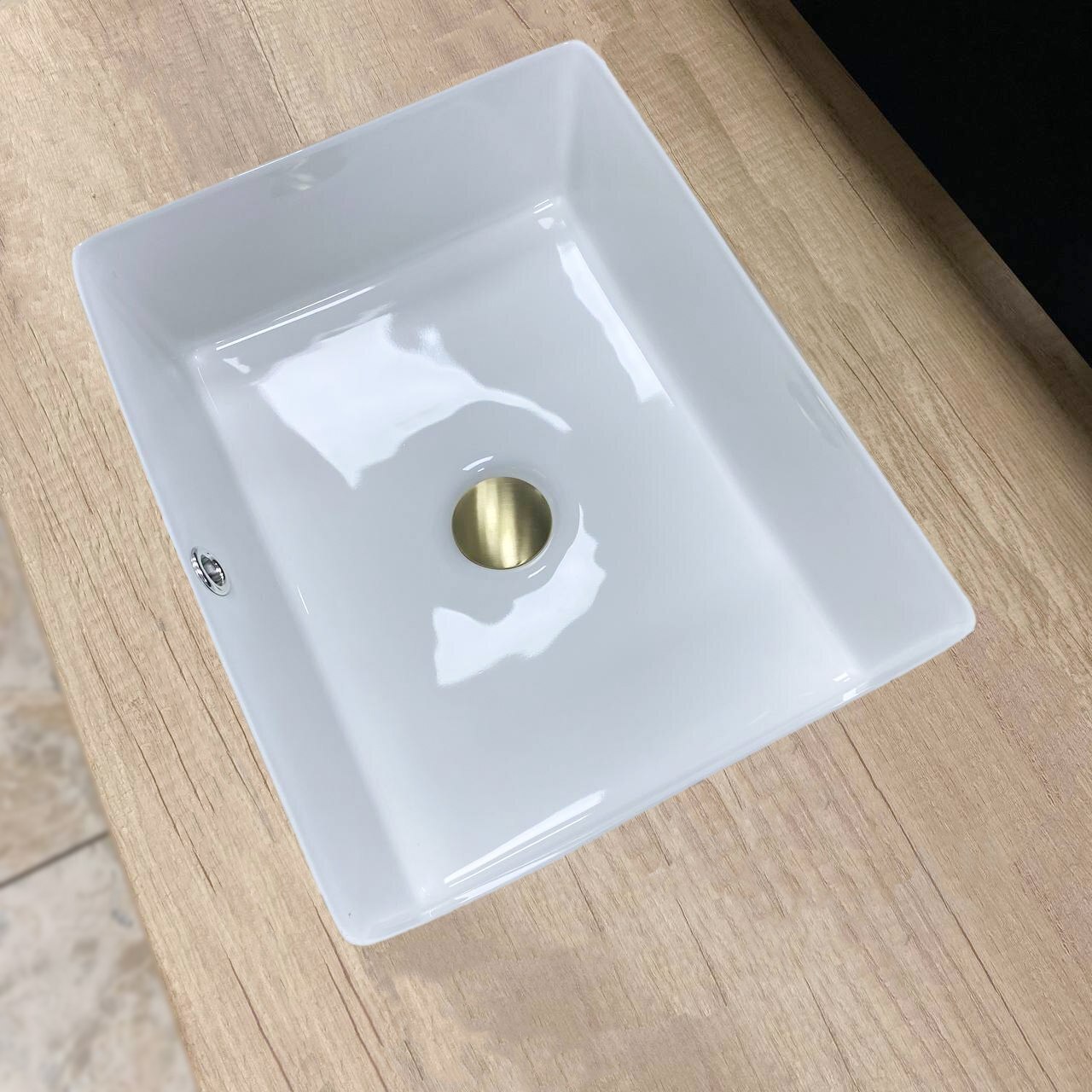 Врізна раковина має комфортну прямокутну форму. Вона виготовлена з кераміки та має отвір для переливу, що забезпечить безпечне користування на довгі роки.
