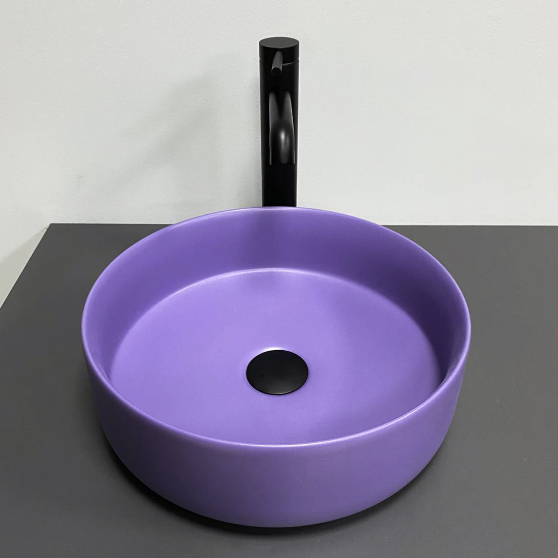 Накладні раковини VBI PRATO доступні у різних кольорах з матовим та глянсовим покриттям. Завдяки круглій формі з прямими стінками раковини стають все більш популярними і мають великий попит. Накладна раковина встановлюється на стільницю або шафу. Модель VBI PRATO LAVENDER – має насичений фіолетовий колір, а матове покриття надає свого шарму.