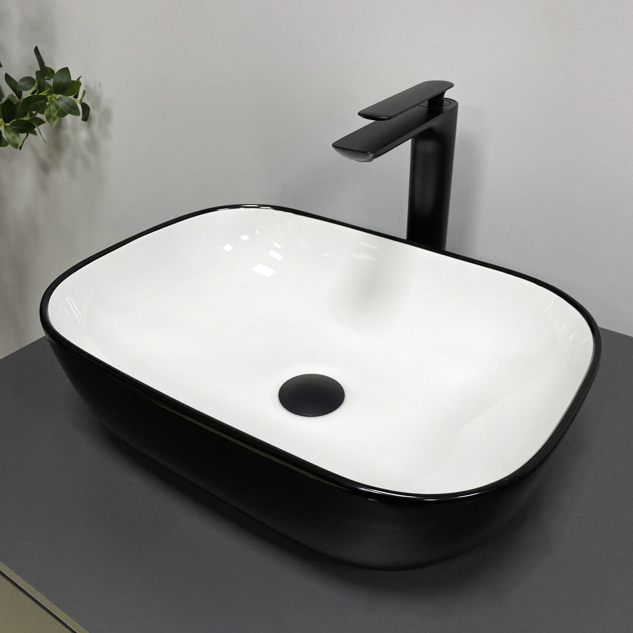 Накладні раковини з колекції VBI RAVENNA мають сучасну прямокутну форму із пом'якшеними заокругленнями. Універсальний дизайн дозволяє підібрати змішувач будь-якої форми. Раковина виготовлена з кераміки найвищої якості, що відрізняється високими гігієнічними властивостями. Модель VBI RAVENNA WHITE має білий колір усередині чорного зовні, з глянцевим покриттям.