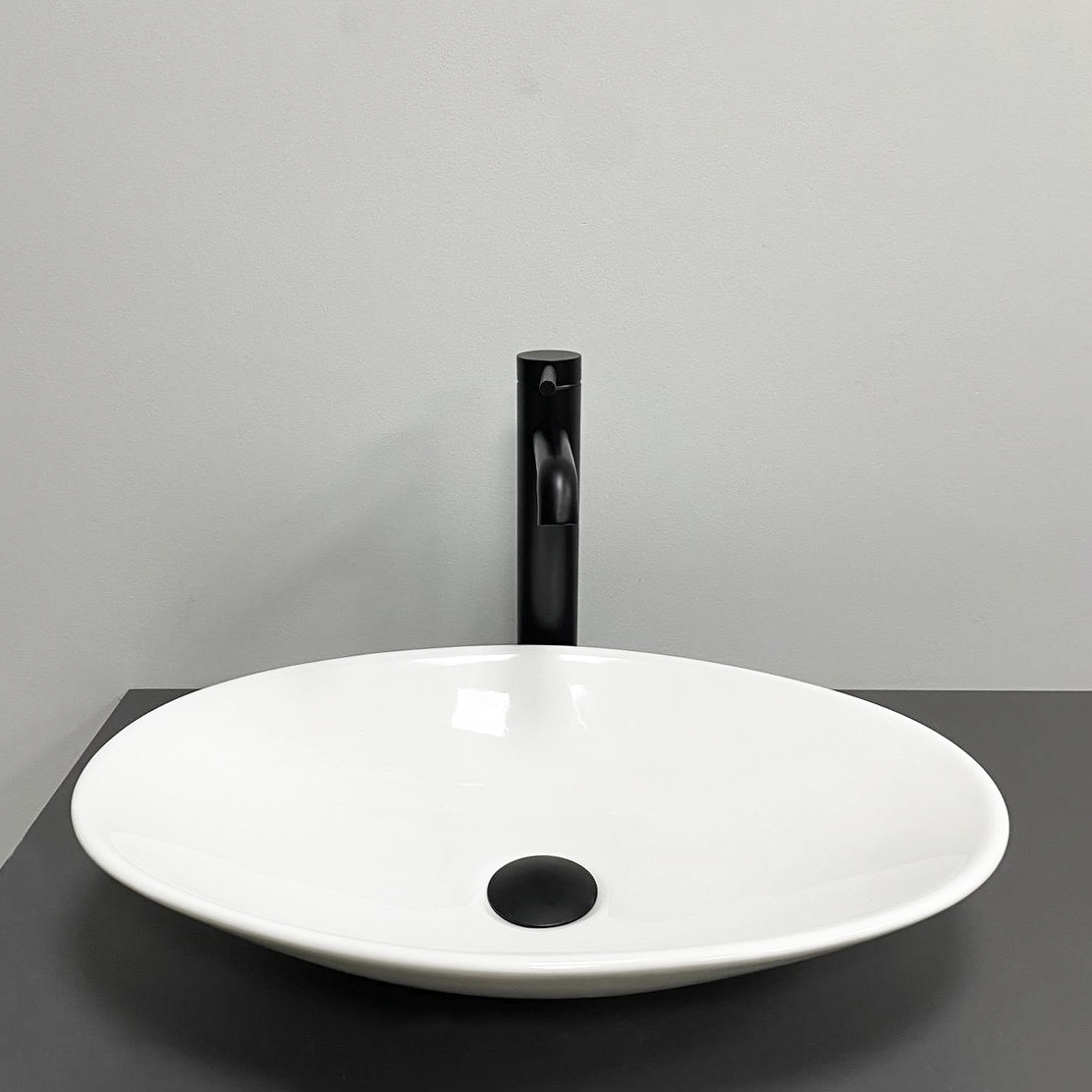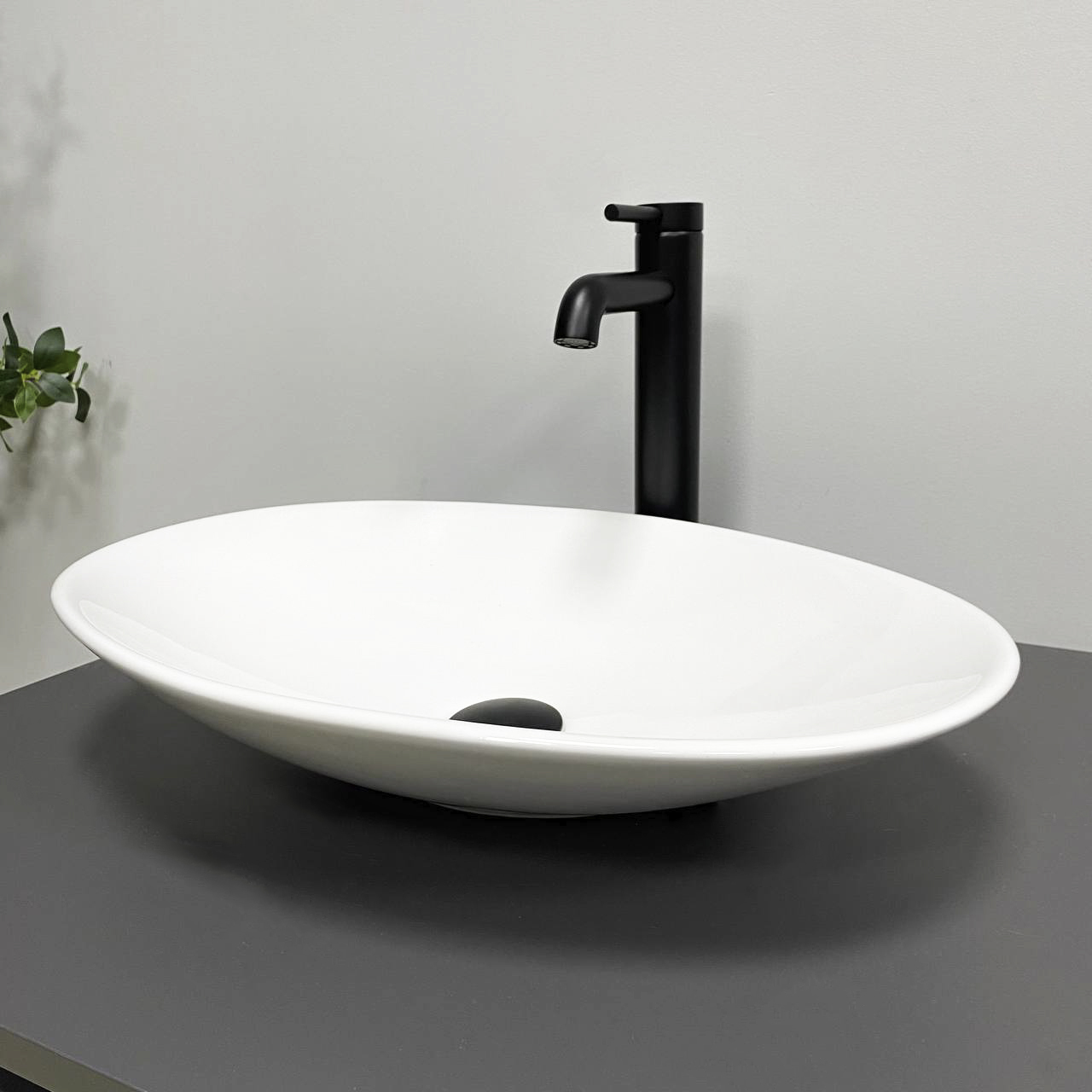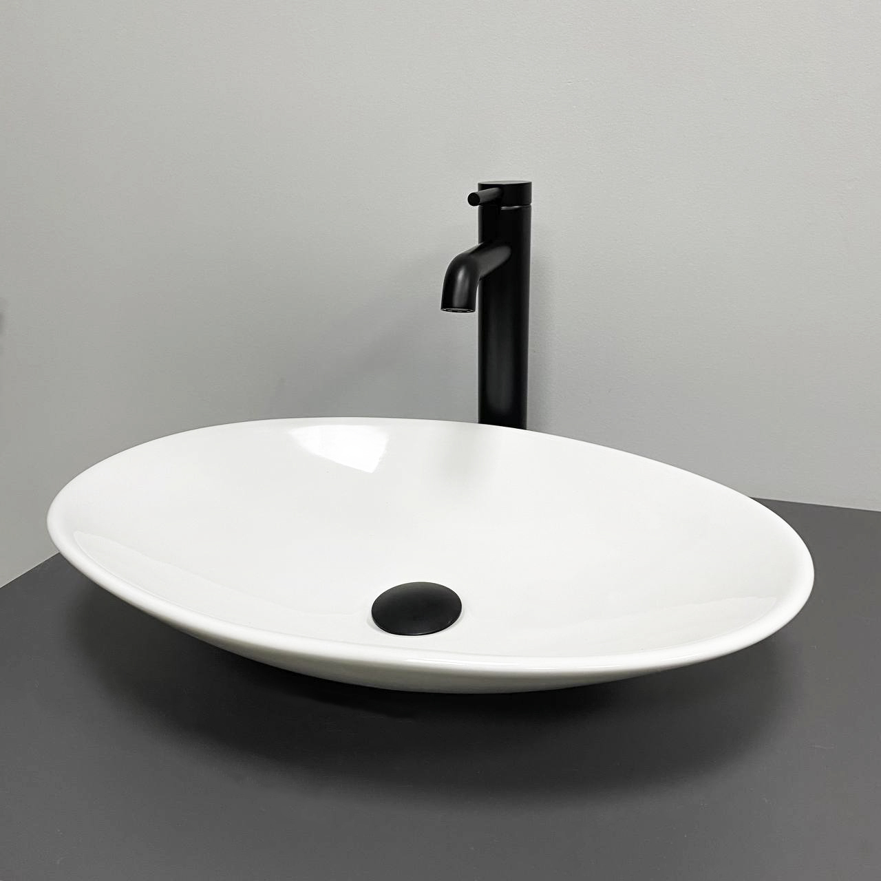 Накладний умивальник VBI TUFARA - має високий попит і доступний в білому кольорі в глянсовому виконанні. Накладна за способом встановлення раковина має сучасну овальну форму. Це дозволяє підібрати змішувач як круглої, так і квадратної форми.