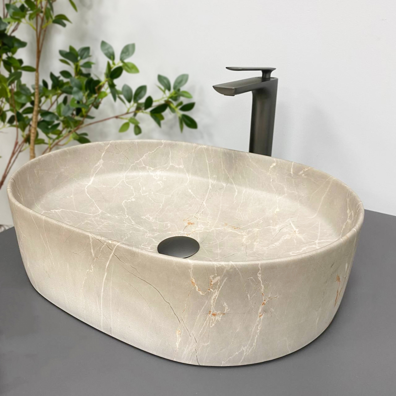Накладні раковини серії VBI VERONA мають високий попит і доступні в різних розмірах і кольорах у глянсовому або матовому виконанні. Накладна за способом встановлення раковина має класичну овальну форму з чіткими лініями. Це дозволяє підібрати змішувач як круглої, так і квадратної форми. Модель VBI VERONA 50 BEIGE STONE MATT має унікальний малюнок, а матове покриття надає загальний шарм.