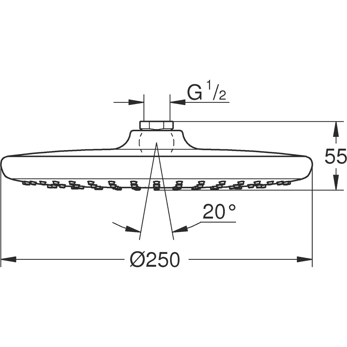 Верхній душ GROHE Vitalio Start 250 дозволяє легко привнести у вашу ванну кімнату сучасний лаконічний вигляд та комфортні, практичні функції. Щедрий душ з круглою лійкою діаметром 250 мм пропонує ніжний, розслабляючий режим Rain, а функція GROHE DreamSpray гарантує, що потік з кожної форсунки буде саме тим, яким потрібно, роблячи ваш душ максимально комфортним і приємним. Обмежувач потоку GROHE EcoJoy зменшує споживання води до 9,5 л/хв та гарантує ідеальний, потужний струмінь, заощаджуючи при цьому воду та гроші. Душові форсунки SpeedClean можна очистити від вапняного нальоту простим протиранням. Для додаткової безпеки ізоляція Inner WaterGuide запобігає перегріванню поверхні, захищаючи сяючий хром. А довговічне хромоване покриття GROHE StarLight збереже бездоганний вигляд лійки на довгі роки.
