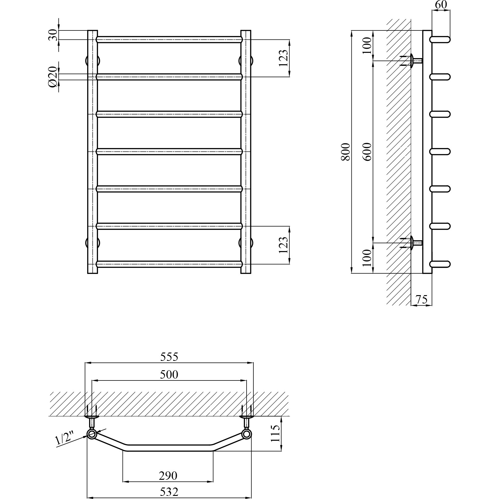 Кількість секцій: 7 горизонтальних перекладин, що забезпечують достатньо місця для рушників.