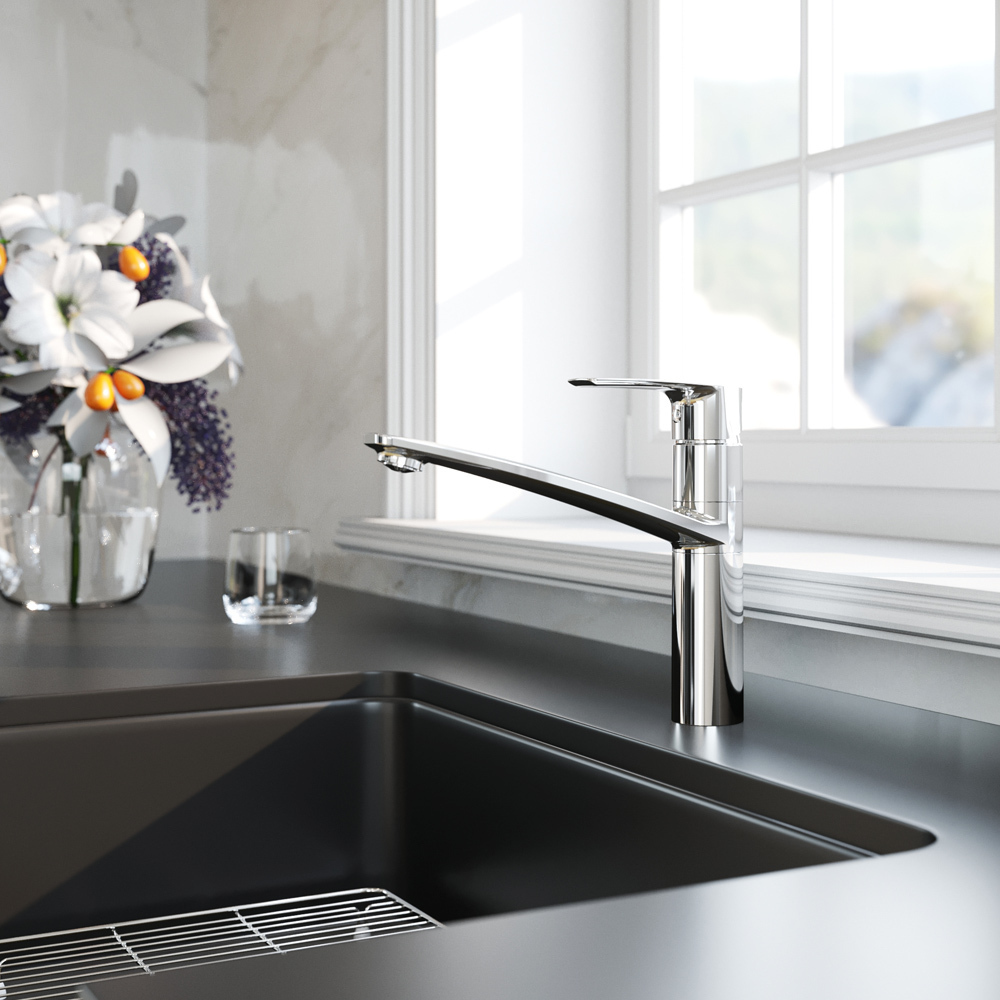 Розроблений з урахуванням ваших потреб та особливостей різних просторів. Високий вилив змішувача для кухні Gem ідеально підійде для будь-якої раковини допоможе вам легко впоратися з такими завданнями, як наповнення великих ємностей.