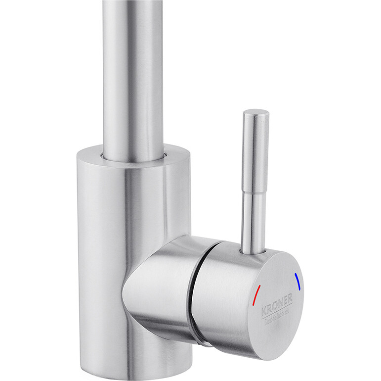 Кухонні змішувачі від Kroner – це німецька якість, технологія та надійність. Сучасний дизайн стане вдалим доповненням до інтер'єру кухні. Виготовлення з якісних матеріалів, що не піддаються корозії, легкість у складанні не завдасть клопоту при монтажі та використанні. Мають поворотний вилив та встановлюється на один отвір з підведенням води за допомогою гнучких шлангів М10х1/2". Шланги для підключення входять в комплект. Дана модель виготовлена з нержавіючої сталі AISI 304.