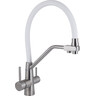 Змішувач для кухні Lidz Aria 020F3 із гнучким виливом із підключенням для питної води (k35) Black Matt – сучасний матовий чорний змішувач із можливістю підключення питної води. Гнучкий вилив дозволяє регулювати потік води, забезпечуючи зручність у використанні, а матове покриття надає виробу стильний і елегантний зовнішній вигляд.