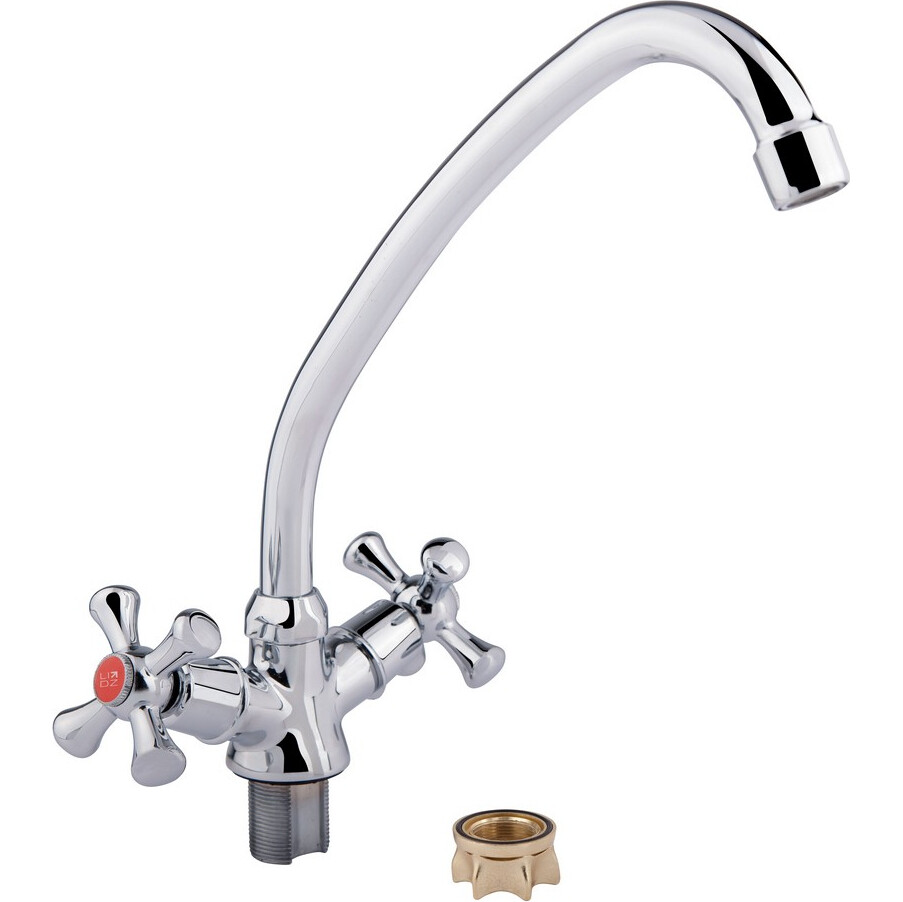 Змішувач для кухні Lidz (CRM) 75 21 272F-1 виготовлений із цинку. Завдяки глянсовому хромованому покриттю має оригінальний зовнішній вигляд. Виконаний у класичному стилі, з вентильними ручками для перемикання потоку холодної та гарячої води.