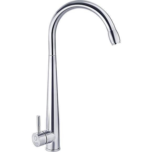 Змішувач PERLA "OCELI" для кухні з високим U-подібним виливом (PSS201) виготовлений з нержавіючої сталі, що забезпечує його довговічність та стійкість до корозії. Він має одноважільне керування, яке дозволяє легко регулювати подачу води та налаштовувати її температуру. Поворотний вилив додає зручності під час миття посуду або наповнення великих ємностей.