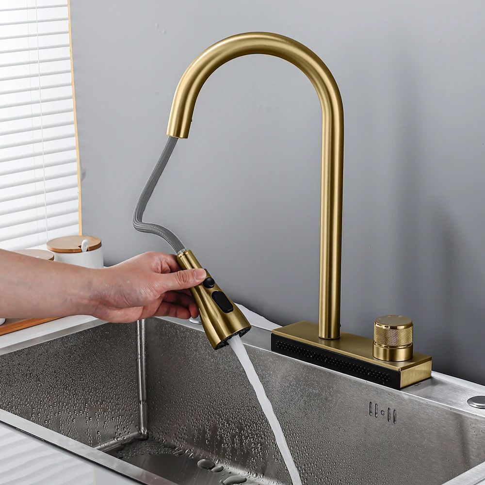 Додатково у змішувач вбудований водоспадний струмінь, що збільшує функціональність змішувача та дозволяє зручно мити овочі та фрукти, а також обполіскувати посуд.