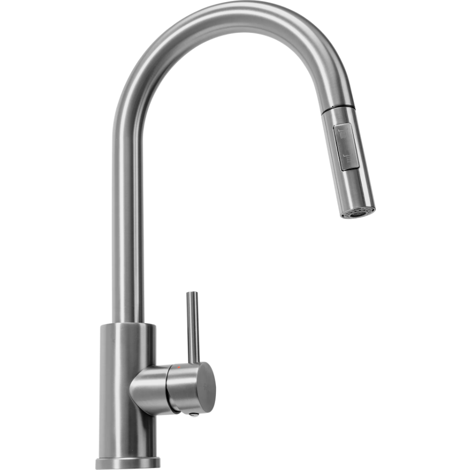 Основа будь-якої функціональної кухні – правильний кухонний змішувач. Латунний корпус є гарантією довговічності та стабільності батареї. Довготривала надійність гарантується використанням керамічної головки. Вигнутий носик дозволяє направити струмінь у будь-яке місце. На кінчику носика є перемикач, який дозволяє вибирати між розсіяним струменем і концентрованим струменем.