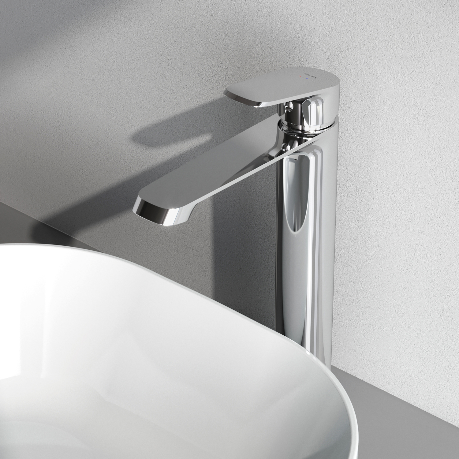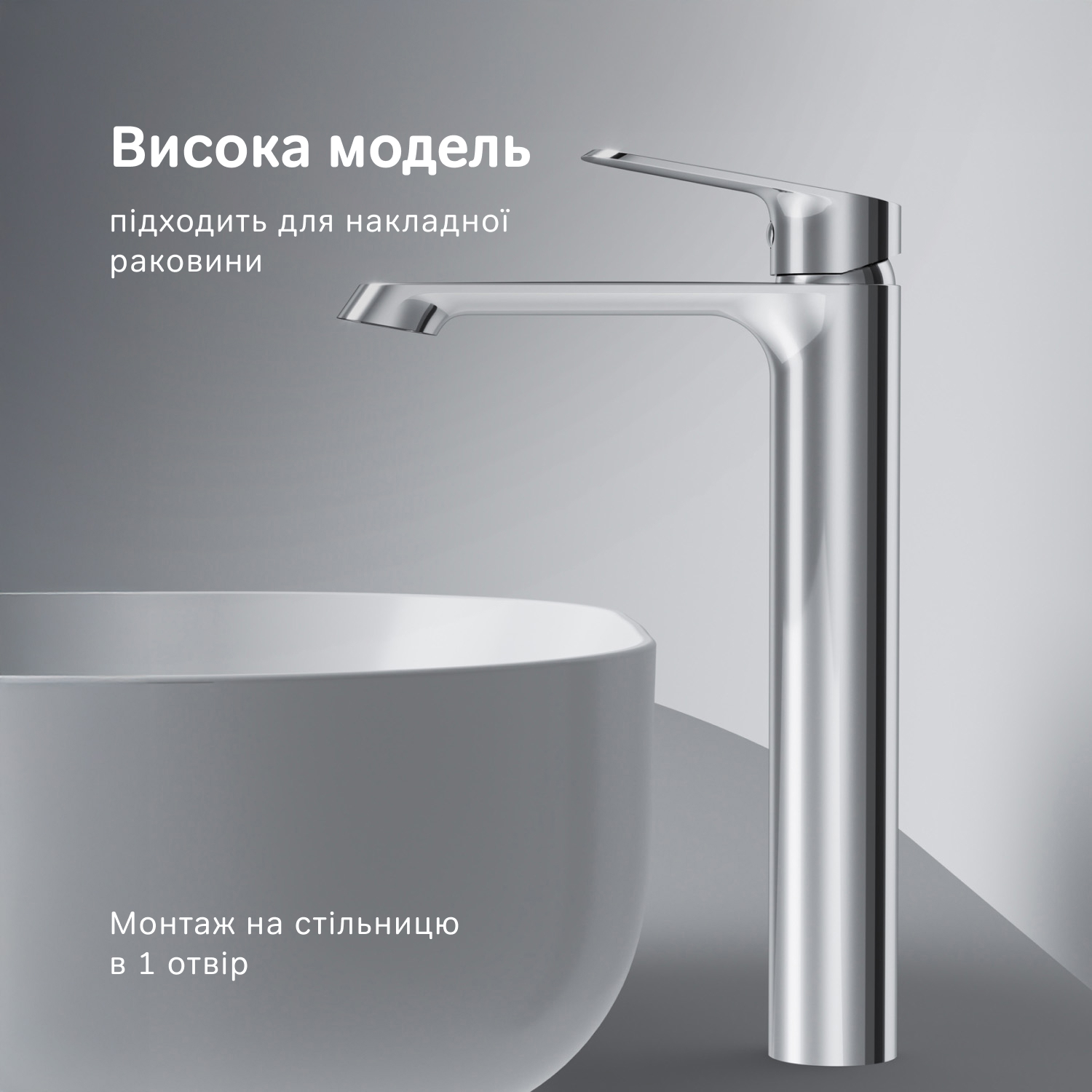 Бездоганний зовнішній вигляд: яскравий геометричний дизайн та витончений силует – змішувач для раковини Func стане справжньою окрасою сучасної ванної кімнати. Лаконічна ручка ідеально лягає у долоню, що значно полегшує процес керування та регулювання температури. Високий вилив - ідеальний вибір для ванної кімнати з накладною раковиною.