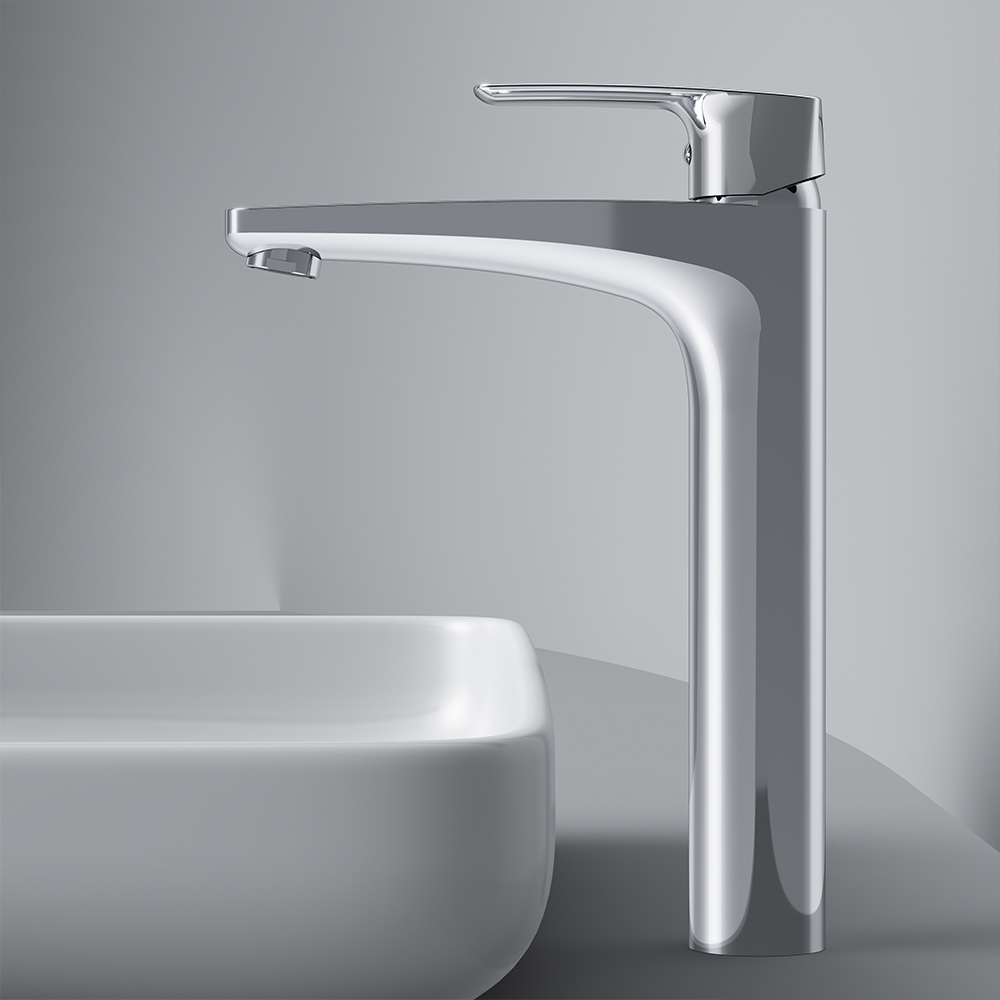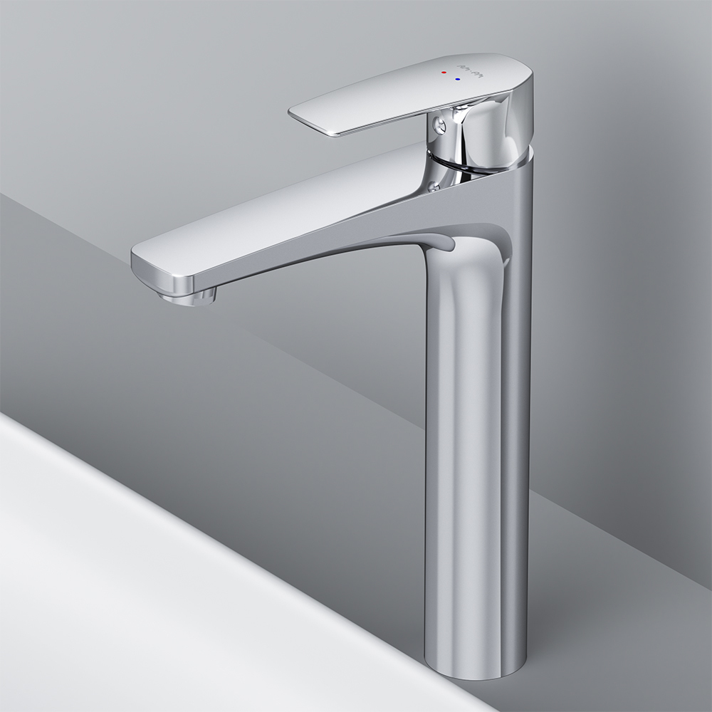 Високий вилив надає змішувачу витонченого вигляду і ідеально підійде для раковини з глибокою чашею, а завдяки великій зоні руху ручки керувати температурою води ще простіше.