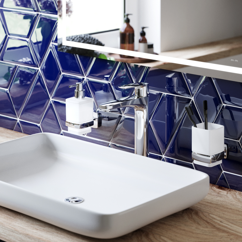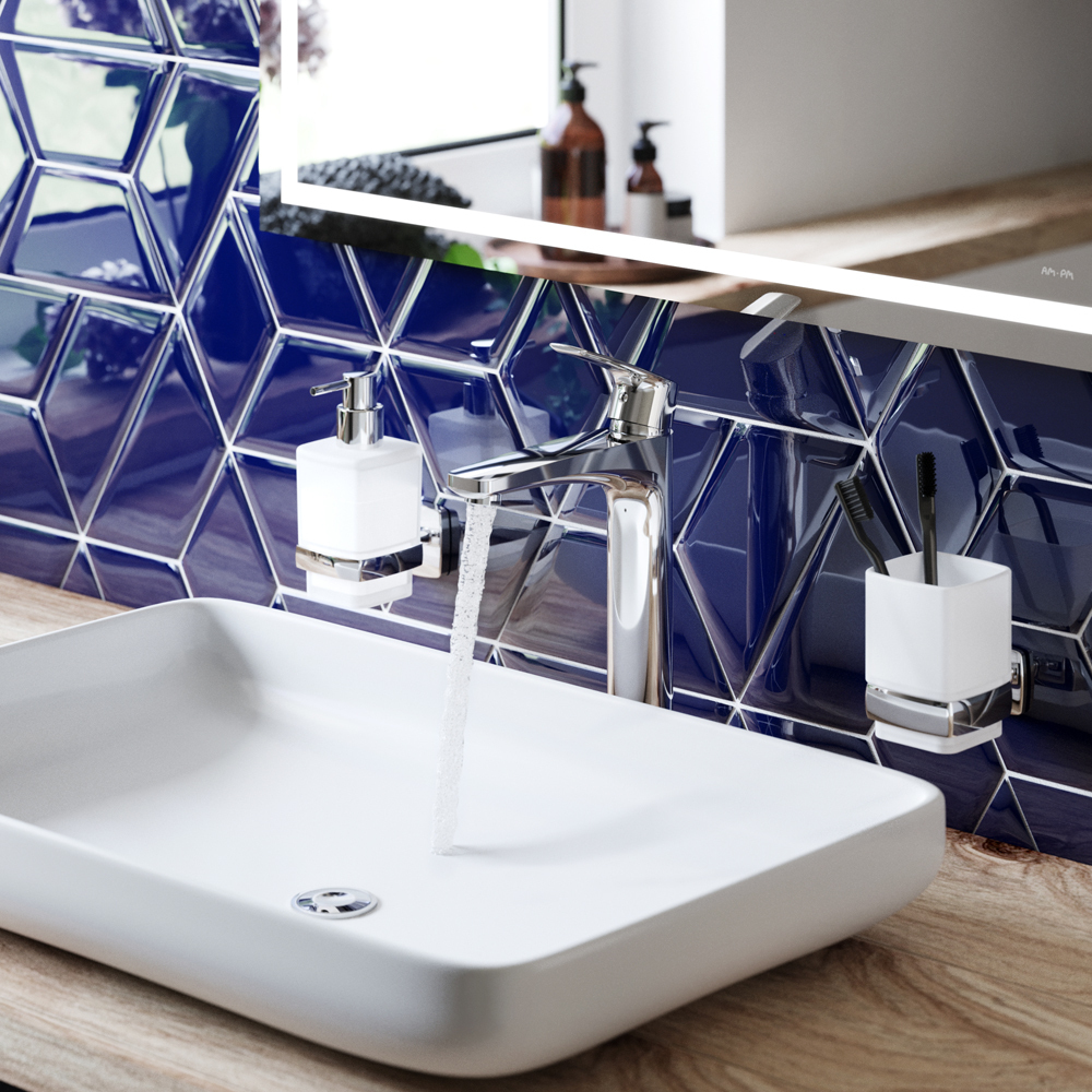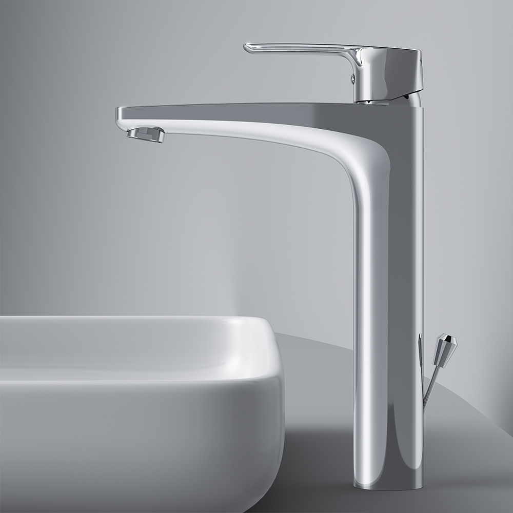 Високий вилив надає змішувачу витонченого вигляду і ідеально підійде для раковини з глибокою чашею, а завдяки великій зоні руху ручки керувати температурою води ще простіше.