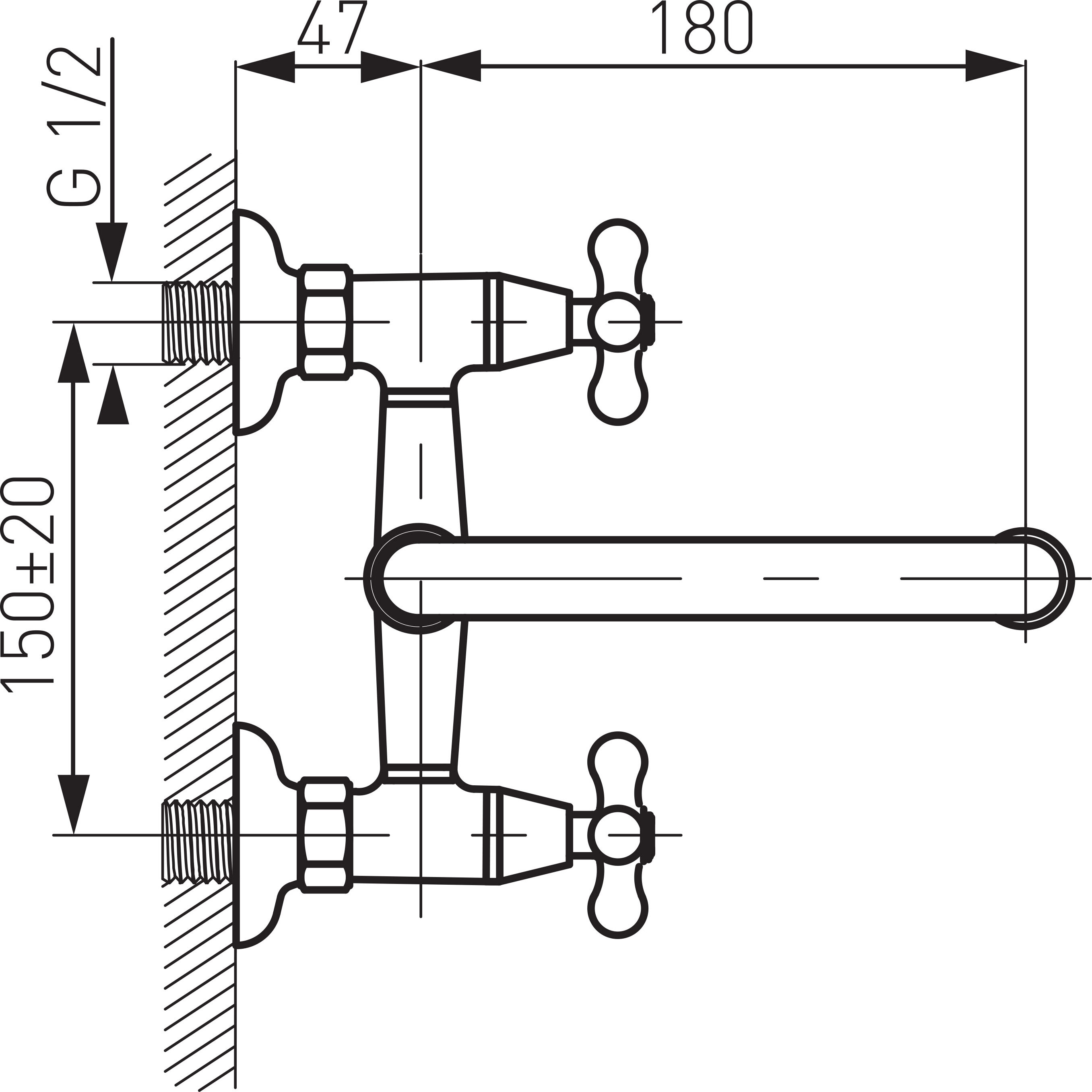 - ексцентричне підведення G1/2 міжцентрова відстань 150 ± 20 мм
