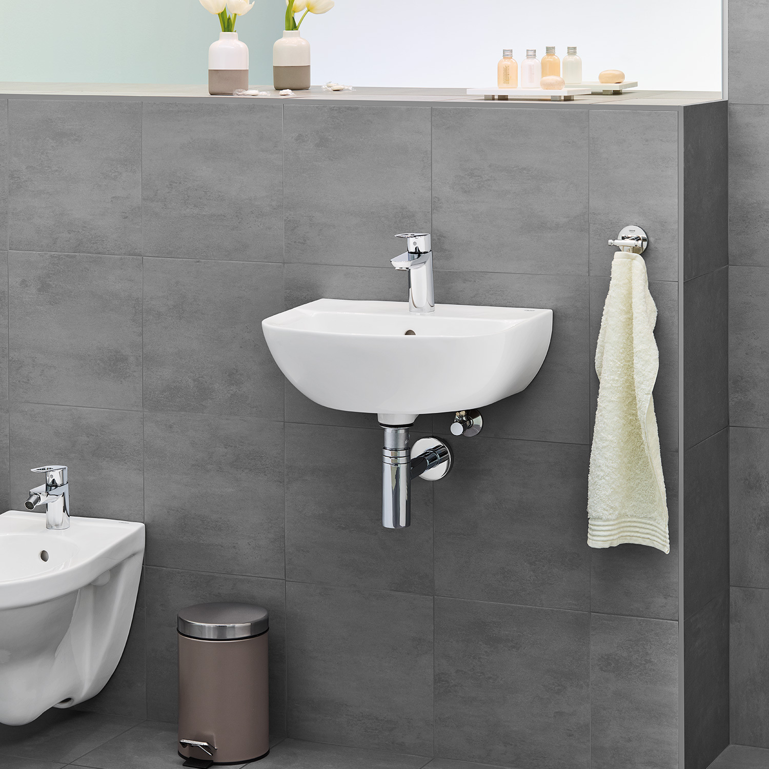 Одноважільний змішувач для умивальника Grohe BauEdge розміру S радуватиме вас довгі роки завдяки своєму нестарілому дизайну. Цьому сприяють його практичні функції.