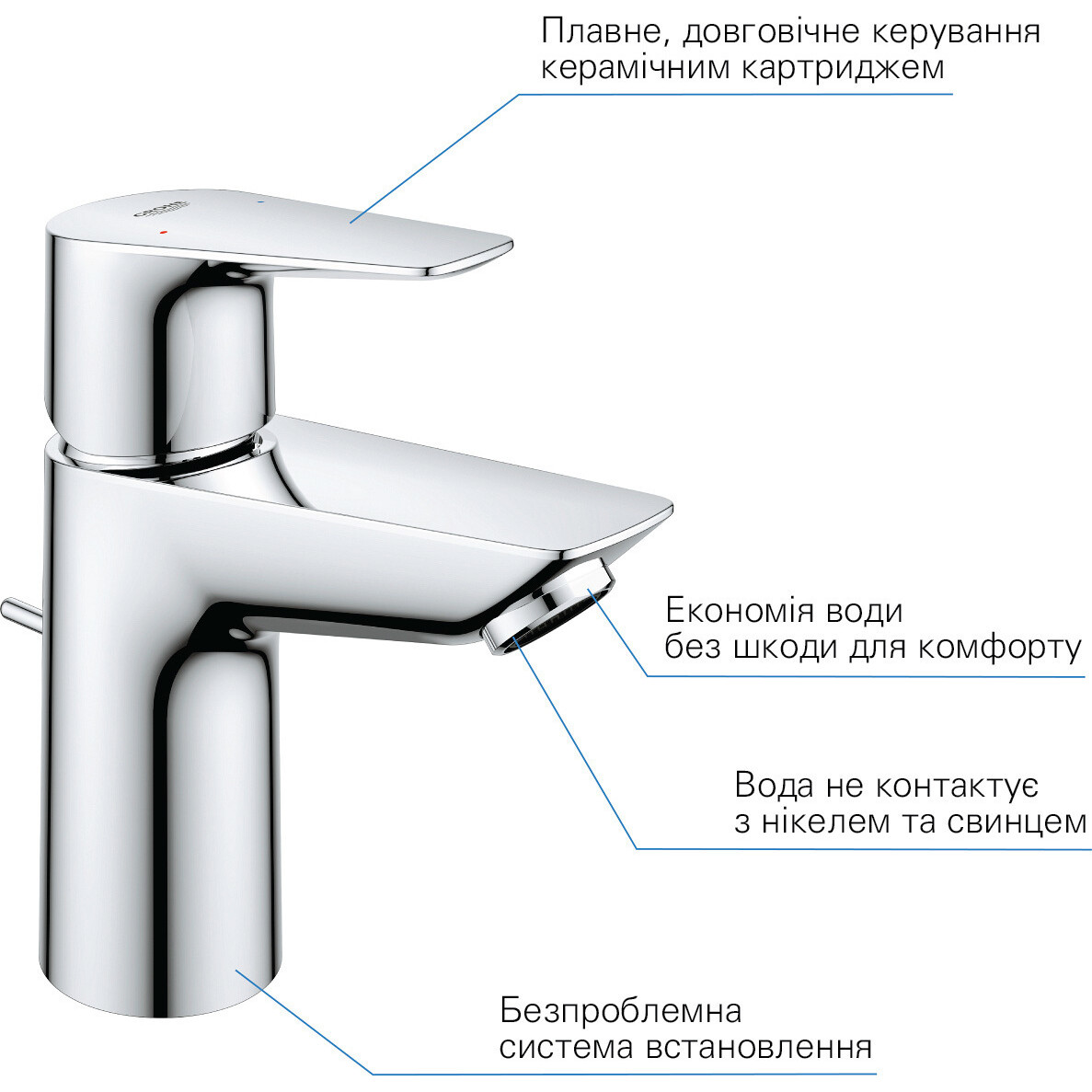 - GROHE Zero - потік води всередині без контакту з нікелем та свинцем