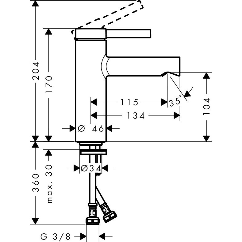 - висота виливу: 104 мм