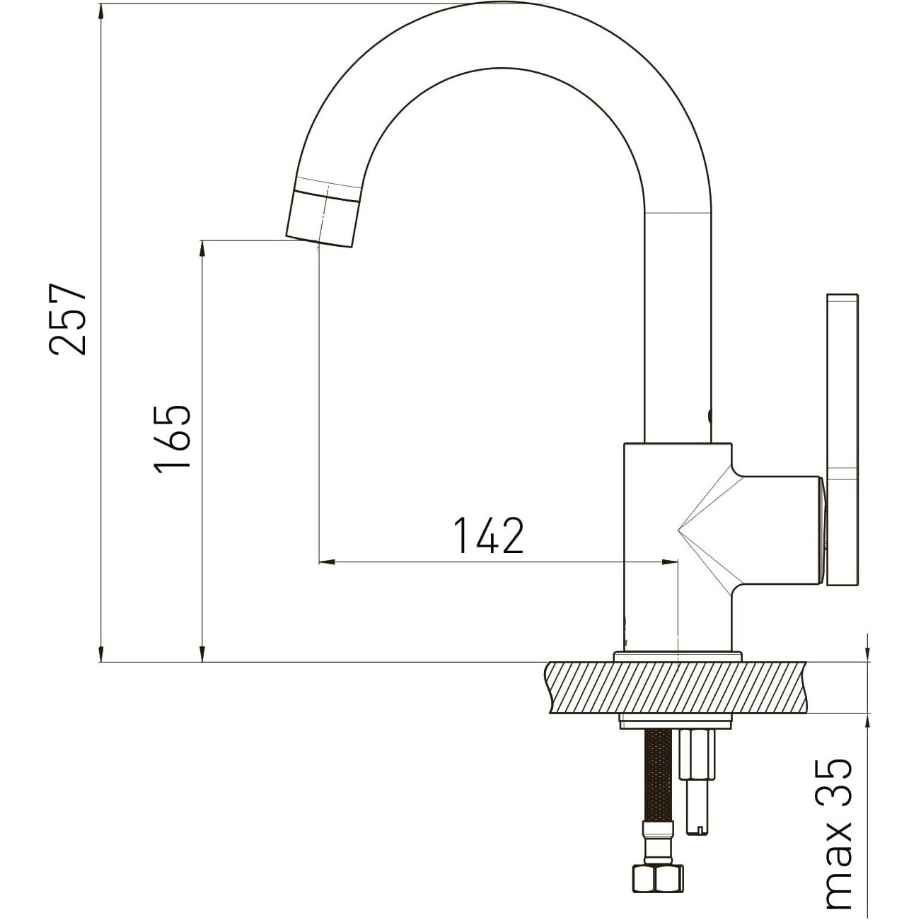 Комплектація: змішувач, комплект кріплення на шпильці, шлаги підведення води 600 мм, G1/2 - 2 шт., Сервісний ключ (ключ для викрутки аератора)